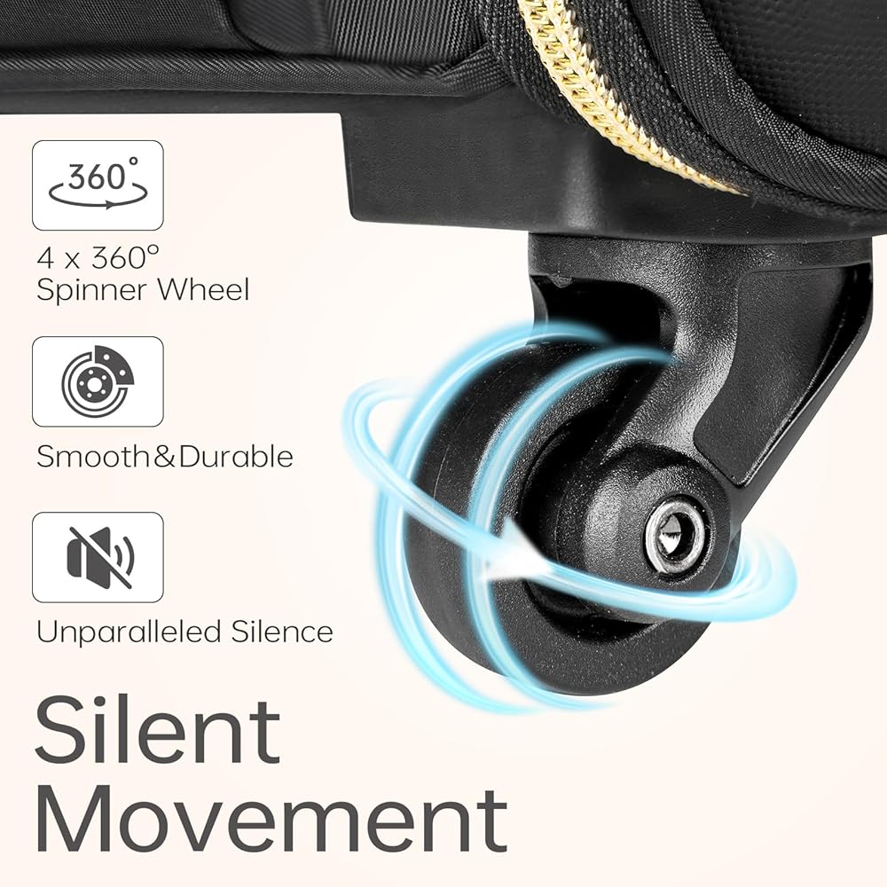 • 【عجلات ناعمة وصامتة قوية】هل ما زلت تشعر تحت ضغط يديك وكتفك؟ مع أربع عجلات دوارة صامتة بزاوية 360 درجة، تحرر هذه الحقيبة الدوارة يديك وكتفك من خلال عجلات مطاطية صامتة عالية الكثافة والتي تمر عبر اختبار الوعر لمسافة 20 ميلًا في ظل ظروف الطريق المختلفة، مما يحقق تجربة انزلاق مستقيمة وسلسة دون تشويش عند الذهاب إلى أي مكان.