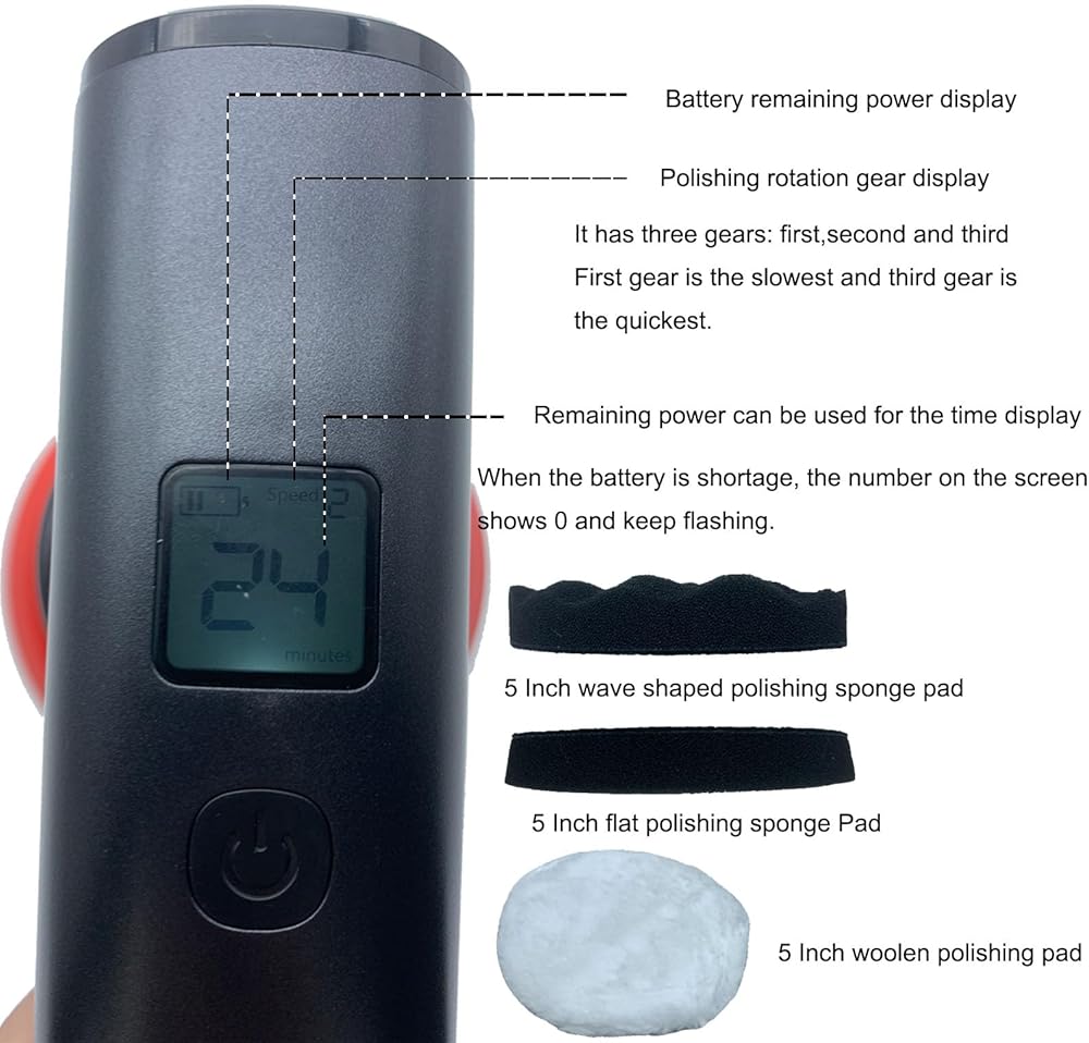 60 minutes of battery life:Up to 60 minutes of battery life allows you to wax the whole car at one go before running out of power.