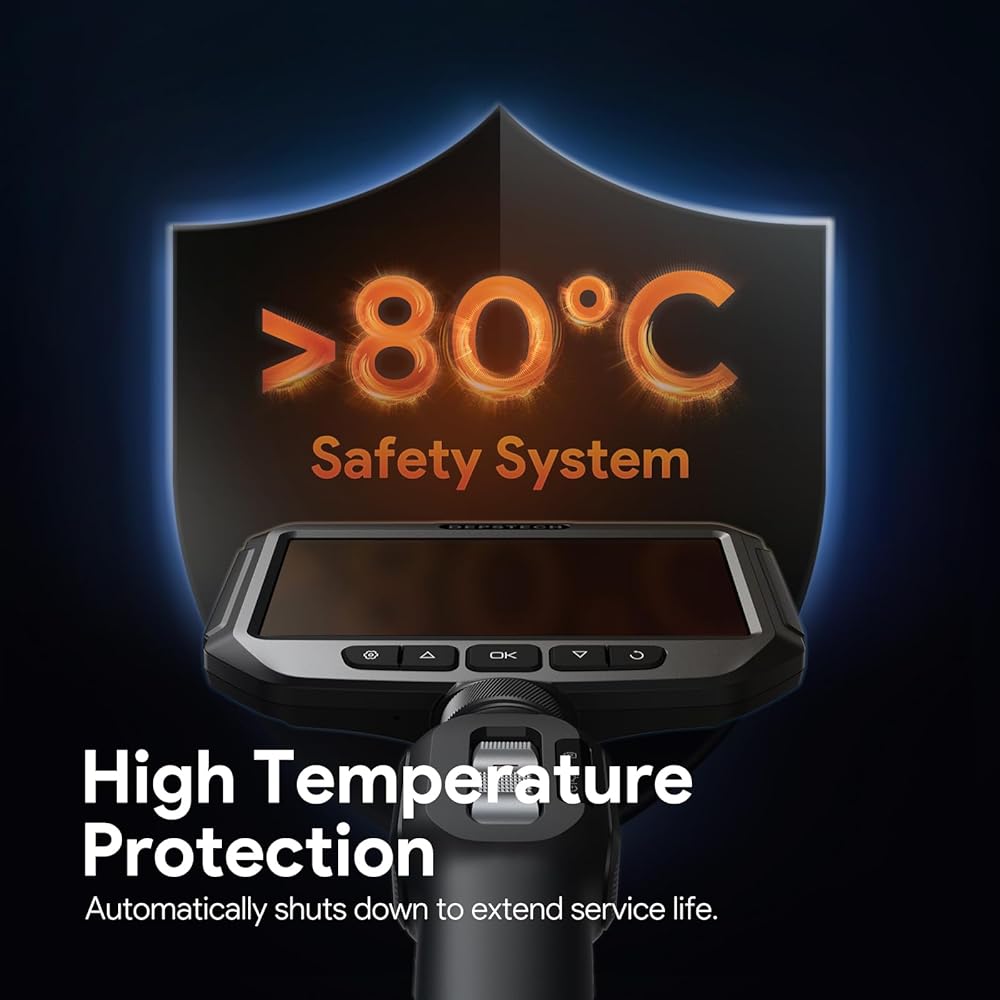 【يدوم طويلاً ومتينًا】تم تصميم نظام الحماية الذكي من درجات الحرارة العالية لحماية كاميرا الفحص. عندما تتجاوز درجة الحرارة 70 درجة مئوية، سيتم تشغيل التنبيه تلقائيًا، ويتم إيقاف التشغيل إذا كانت درجة الحرارة أعلى من 80 درجة مئوية. يتميز بوريسكوب ببطارية بقوة 3350 مللي أمبير في الساعة توفر ما يصل إلى 3.5 ساعة من الاستخدام المتواصل. يضمن المسبار المرن القابل للتوجيه والتصوير عالي الدقة إمكانية التعامل مع أي مهمة بثقة. أداة يجب اقتناؤها لعشاق الأعمال اليدوية والمهنيين.