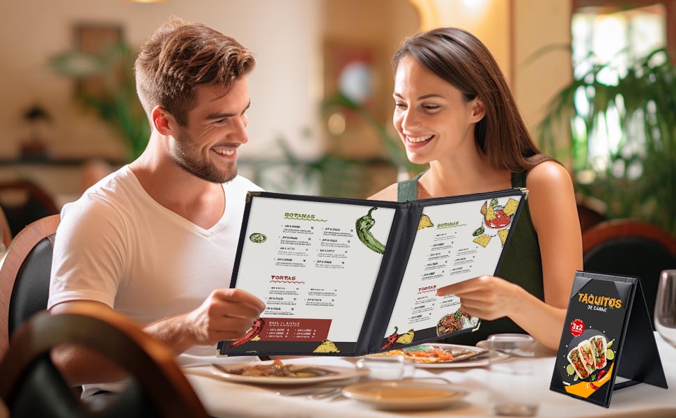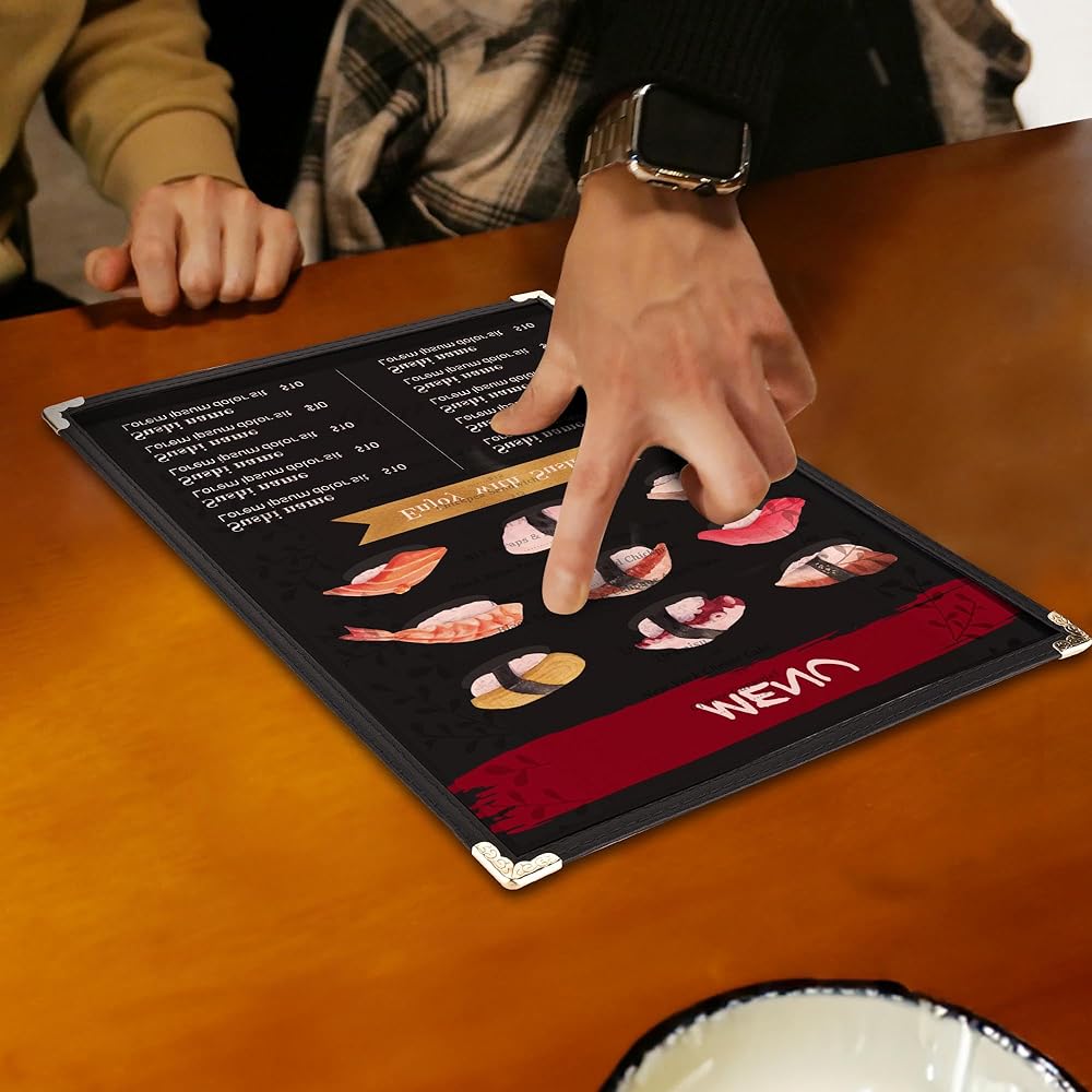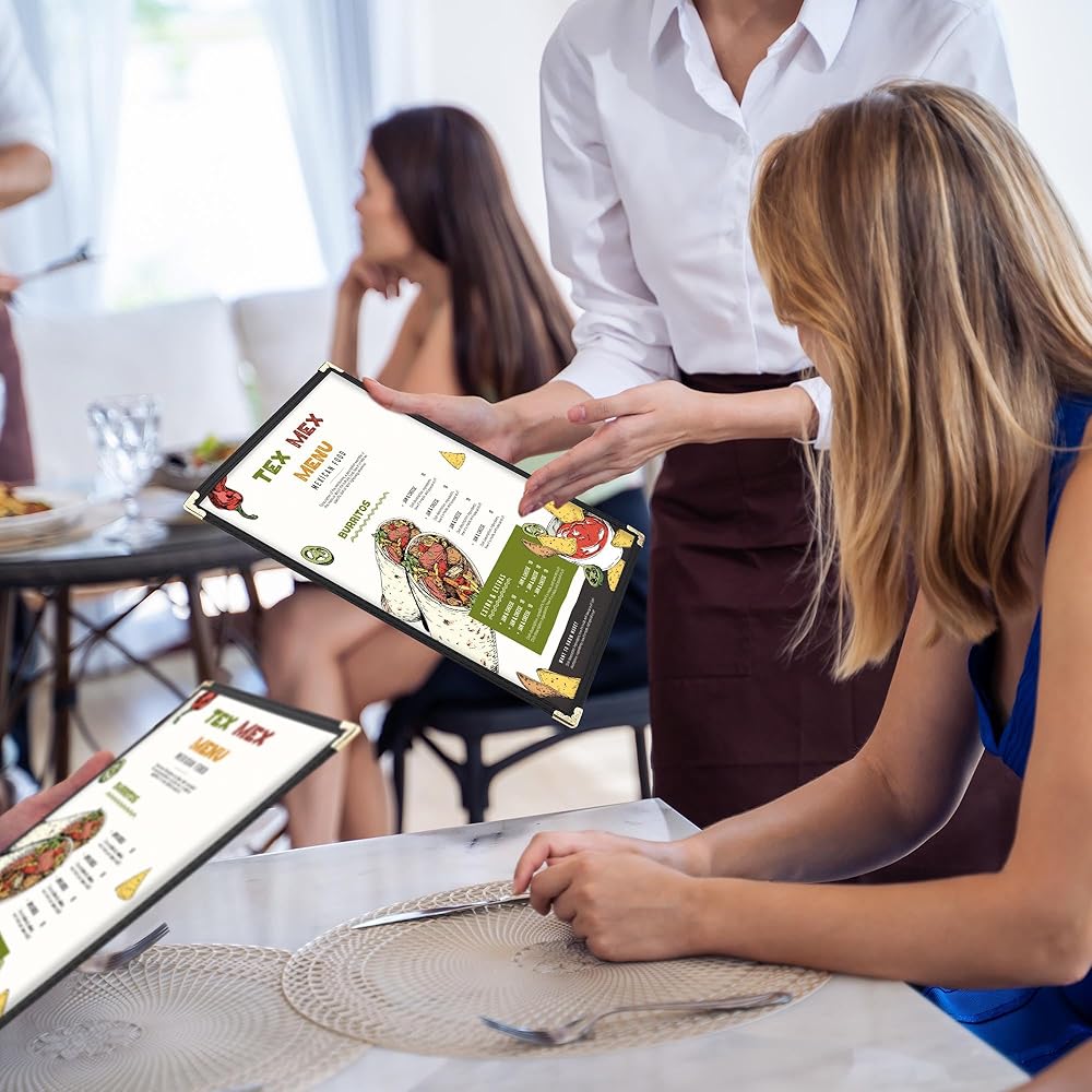 [مرئي وواقي]: يتميز بأغطية شفافة لعرض قوائمك بوضوح، مع الحفاظ عليها نظيفة ومحمية، حتى مع الاستخدام المتكرر والمتسق، قوائم مثالية للاستخدام اليومي في المطاعم ذات الأنماط المختلفة مثل الحديثة والتقليدية