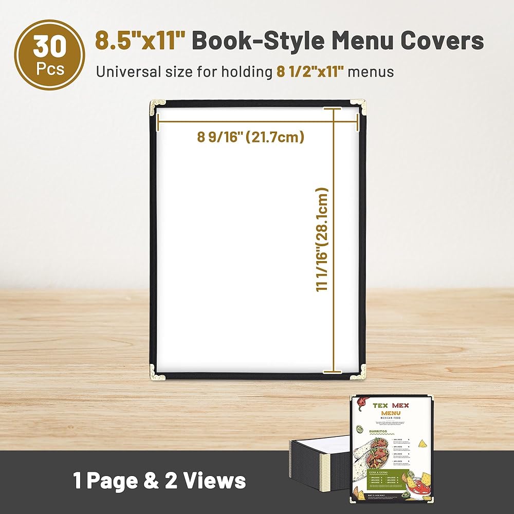 [كمية كبيرة ومتعددة الوظائف]: هذه المجموعة المكونة من 30 قطعة من أغطية القائمة مقاس 8.5 × 11 تسمح بتقديم طلبات تجارية متعددة، بينما تتميز كل واحدة بصفحة واحدة 1 صفحة 2، مثالية لحمل قوائم بحجم ورق A4 مقاس 8 1/2 بوصة × 11 بوصة العروض اليومية أو اختيارات المشروبات أو خيارات الحلوى في المطاعم