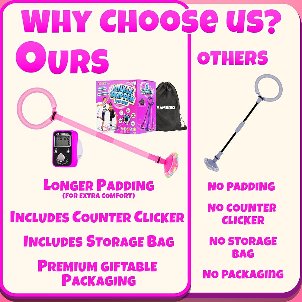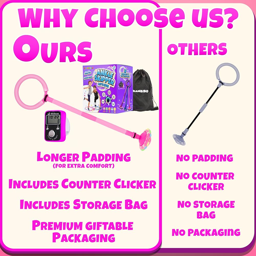 💜 كرة تزلج ملونة، لا تحتاج إلى بطاريات: قل وداعًا لمتاعب استبدال البطاريات باستمرار. تم تصميم لعبة بامبيبو سكيب للعب دون انقطاع، مما يضمن أن يستمتع طفلك بساعات لا تحصى من المرح النشط.
