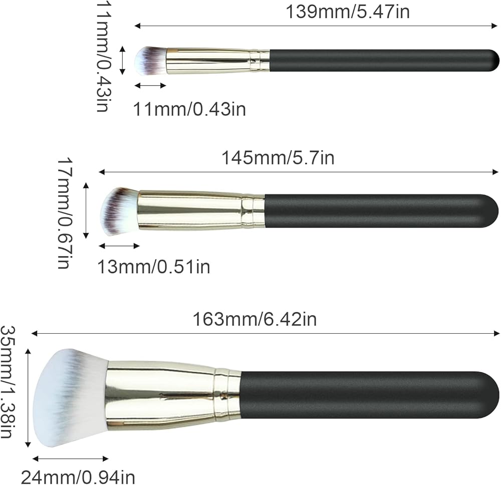 تتضمن العبوة 3 قطع فرشاة خافي عيوب الأساس تحت العين للمكياج، فرشاة كريم أساس بزاوية 170 درجة، فرشاة خافي عيوب واحدة 270، فرشاة خافي عيوب صغيرة 370