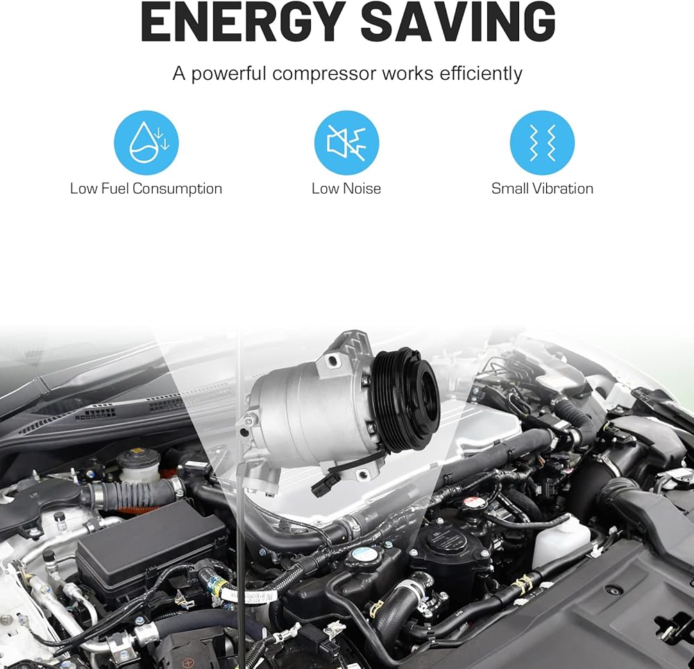 【Energy Saving】Our AC compressor kit works efficiently under low noise and tiny vibration to provide you a super cool trip. Driving at a stable speed will help reduce fuel consumption