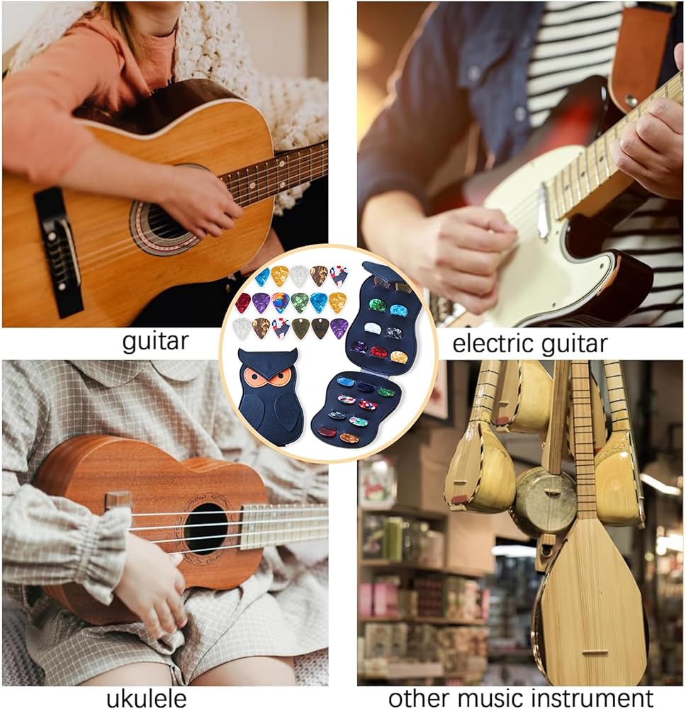 • ❤ حامل غيتار خاص - حامل اختيار الجيتار على شكل بومة مصنوع من جلد البولي يوريثان عالي الجودة، مما يوفر متانة عالية القوة لحماية اختياراتك. يمكن لأي عازف جيتار أن يشعر بالإحباط الناتج عن وضع الالتقاط في غير مكانه، أحيانًا في أسوأ وقت ممكن عند الأداء. المسرح. تأكد من الوصول السريع والبسيط إلى اختيارك البديل بأناقة مع حامل اختيار الجيتار هذا.