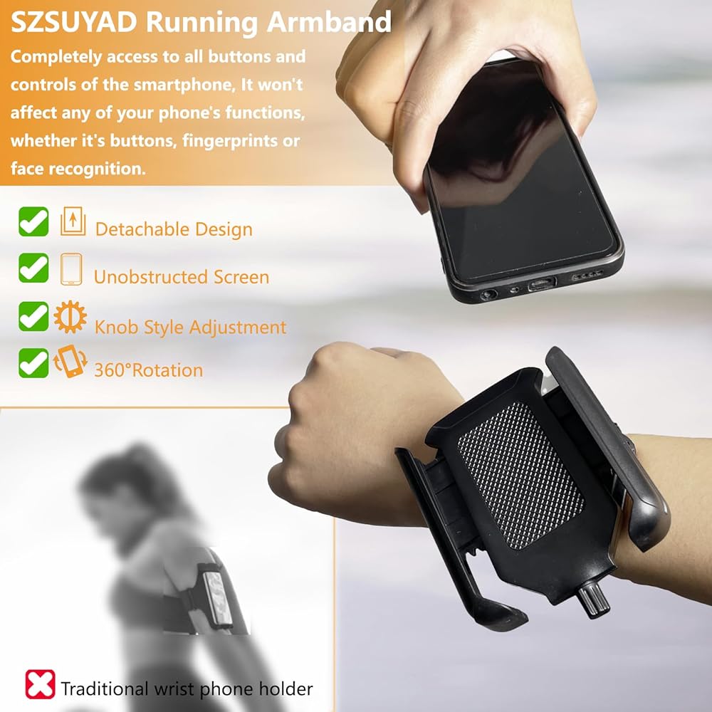 [دوران 360 درجة وقابل للفصل] دوران حر 360 درجة يمكنك ضبط الزاوية بحرية وإيجاد الوضع المناسب لك. إنه يختلف عن حامل الهاتف المشابه لحزام الذراع الموجود في السوق، يمكنك إزالته بسرعة بيد واحدة؛