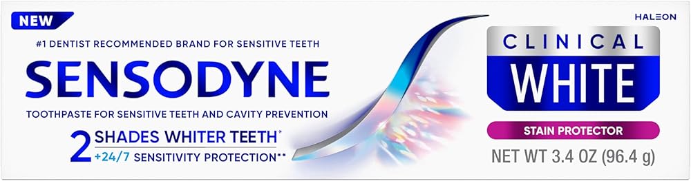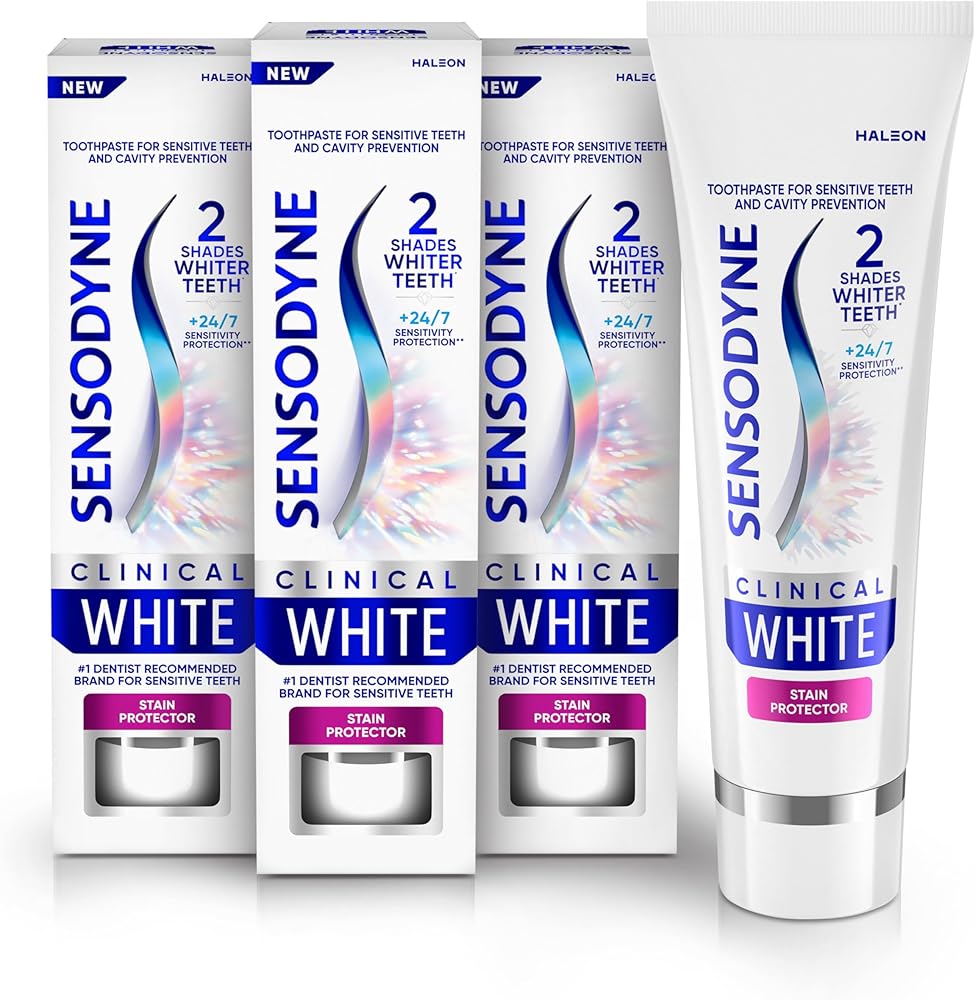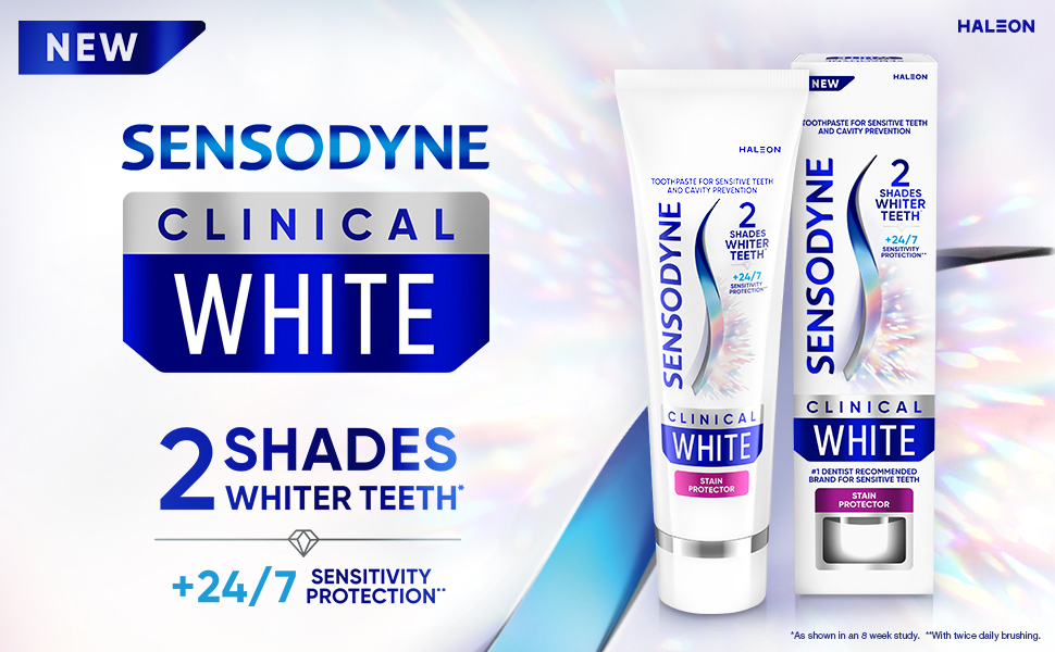 Sensodyne Clinical White toothpaste provides clinically proven whitening, specially designed for sensitive teeth. Delivering 2 shades whiter teeth (1) and 24/7 sensitivity protection (2), Sensodyne Clinical White is also safe for your enamel. The triple action formula contains clinically proven whitening ingredients that whiten, polish and help protect teeth from future stains. Sensodyne is the number 1 dentist recommended brand for sensitive teeth and provides all the benefits of an anticavity toothpaste, while being great tasting and leaving you with minty fresh breath. New Sensodyne Clinical White toothpaste comes in fully recyclable packaging (3). For trusted daily oral care and whiter, brighter teeth, choose Sensodyne Clinical White. (1) as shown in 8 week study, Milleman, The Journal of Clinical Dentistry. 2017 Jun;28(2):1-8 (2) with twice daily brushing (3) check locally, recycling facilities for cap may not exist in your area