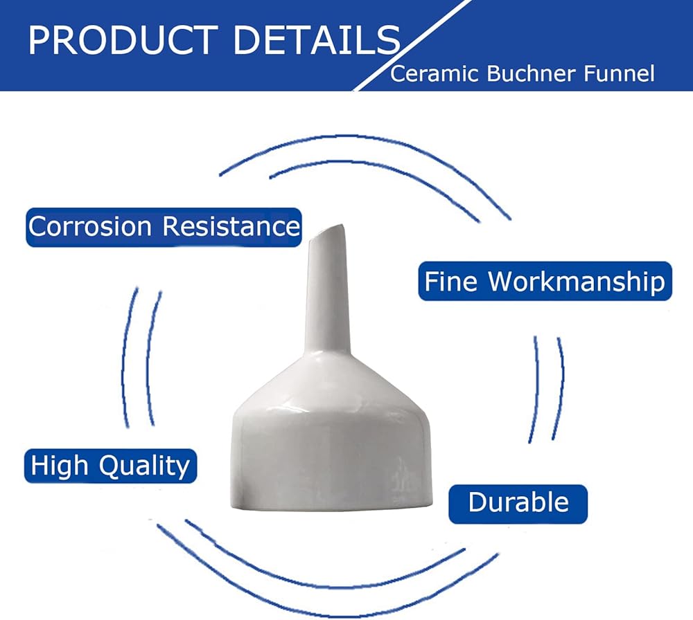 Porcelain buchner funnels include fixed perforated plates. The inner and outer surfaces of the funnel are glazed, except for the rims. Excellent acid and alkali resistance. Every batch of porcelain is heat tested in our factory. If there is any problem with the product you receive, we will solve it for you in time.