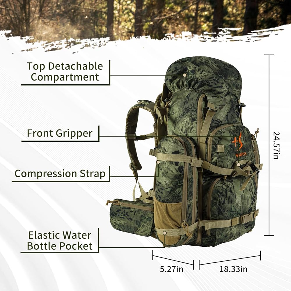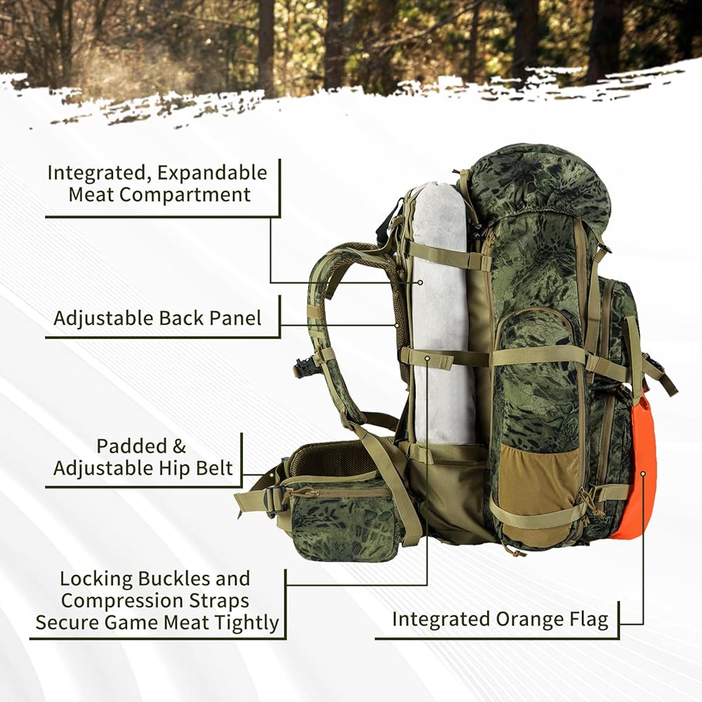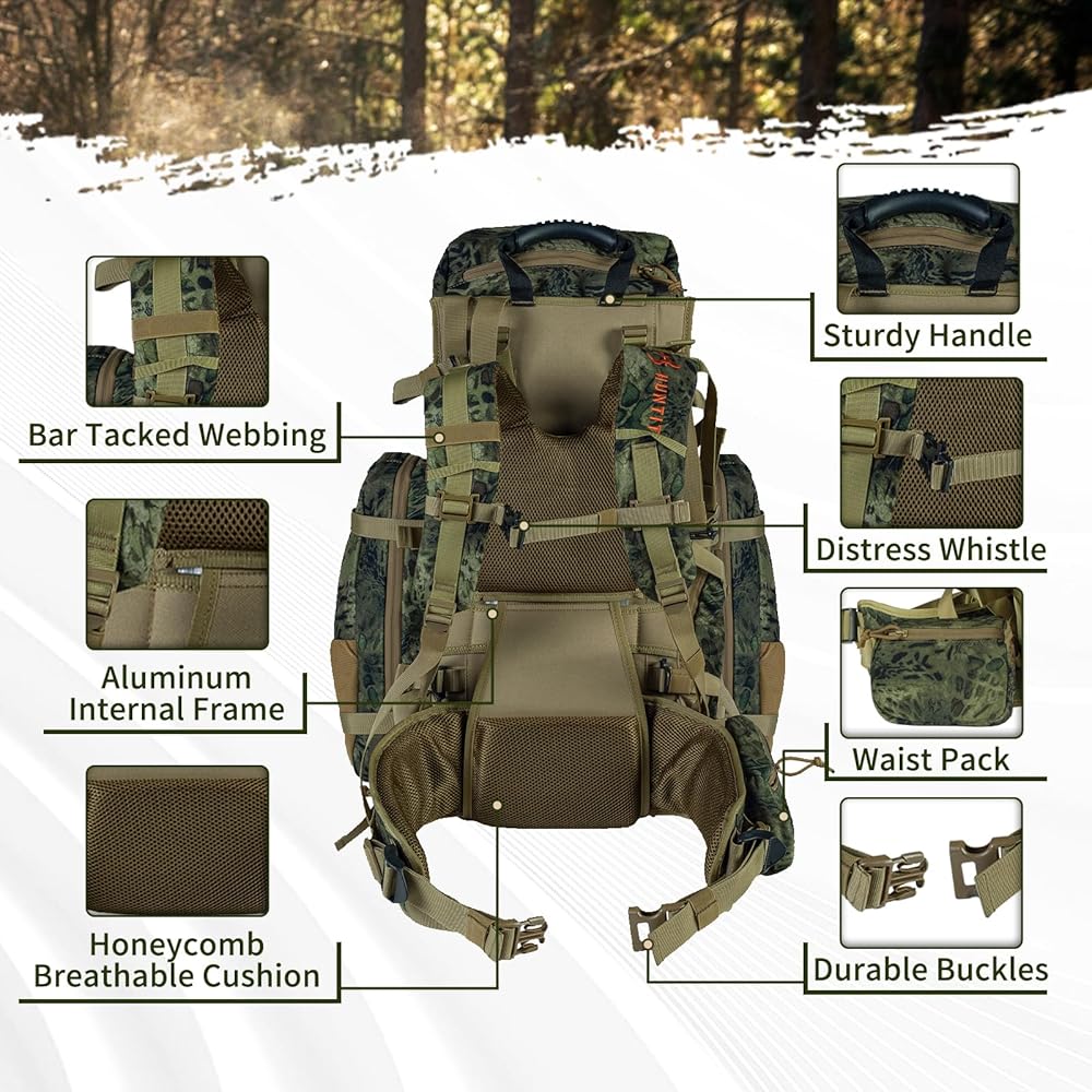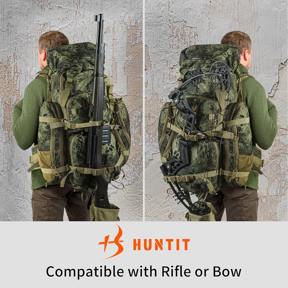 مريح: تتيح لك خيارات الجذع القابلة للتعديل داخل اللوحة الخلفية لحقيبة ظهر الصيد متعددة الأيام من HUNTIT تكوين الحقيبة بالشكل الدقيق الخاص بك من أجل حمل مريح. تتميز حقيبة الصيد المموهة هذه التي تم اختبارها ميدانيًا ببطانة حزام الورك لتعزيز الراحة، خاصة تحت الأحمال الثقيلة. .
