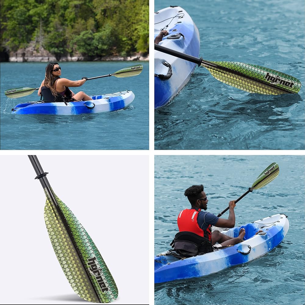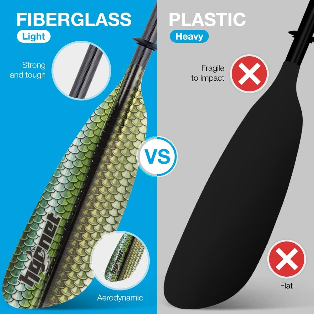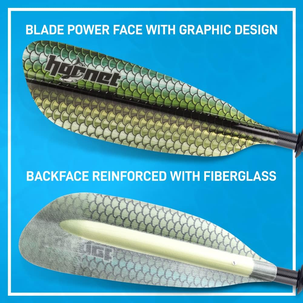 متينة: شفرة المجداف مصنوعة من الألياف الزجاجية المتينة، بينما العمود عبارة عن مزيج من ألياف الكربون الخفيفة والألياف الزجاجية. يوفر هذا المزيج مرونة مثالية لجلسة التجديف الخاصة بك، سواء كنت بالخارج لركوب مريح أو للتمرين الشاق.