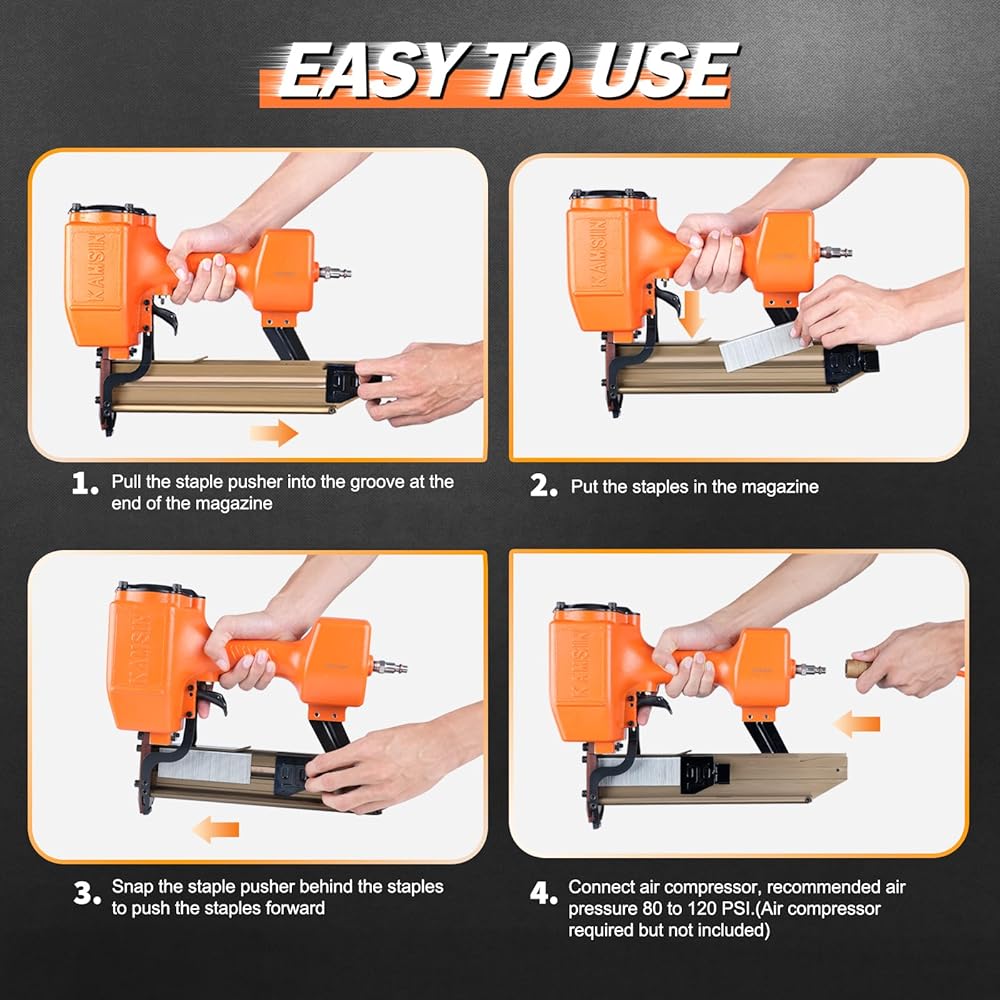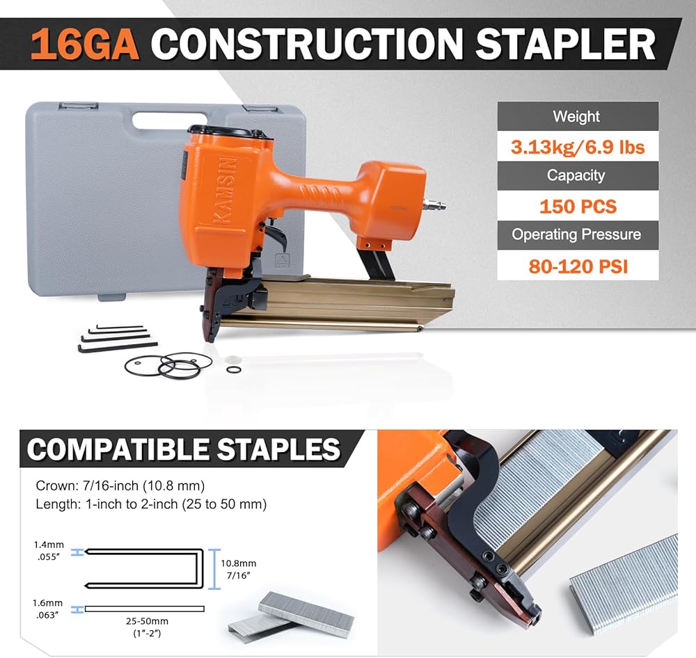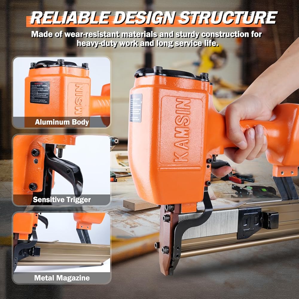 Kamsin N851 16 مقياس 7/16 بوصة دباسة بناء التاج المتوسط تقبل دبابيس من 1 بوصة إلى 2 بوصة، مسدس أساسي هوائي عالي التحمل لتزيين السقف والانحياز، والمبارزة، والنجارة