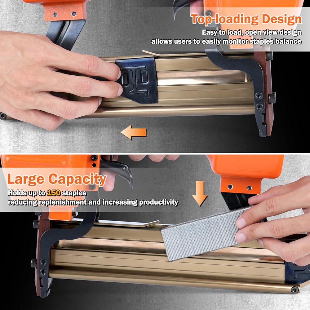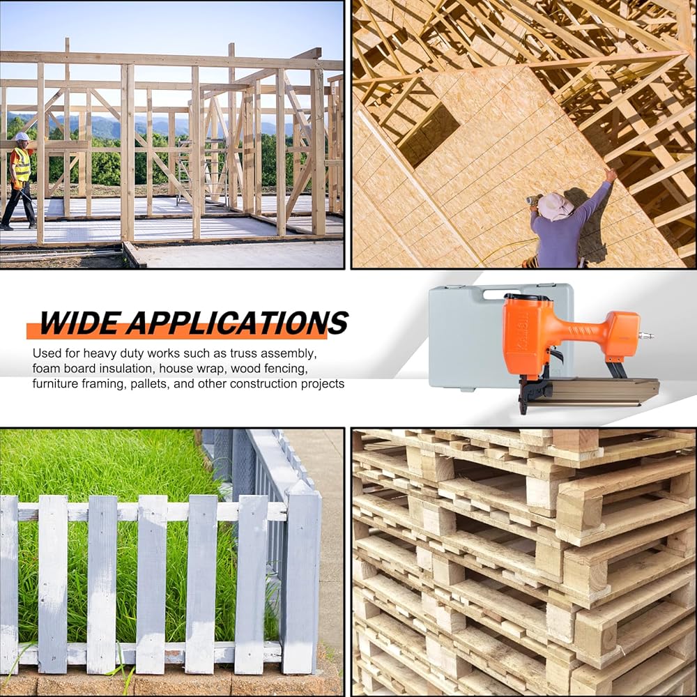 [مواصفات الدبابيس والاستخدام الواسع] متوافق مع 16 قطعة أساسية للبناء بمقياس 7/16 بوصة (10.8 مم) تاج متوسط، و1 بوصة إلى 2 بوصة (25 إلى 50 مم) طول الساق. تستخدم بشكل جيد في التغليف، وتزيين السقف، والأرضيات الفرعية، وتثبيت الجوانب، وصنع المنصات، وتجميع الصناديق والمزيد.