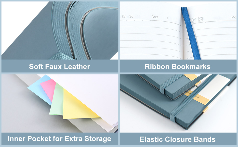 شريط إغلاق مطاطي + إشارة مرجعية شريطية: المجلات ذات أشرطة إغلاق مرنة للحفاظ على ملاحظاتك وأعمالك الفنية آمنة. وتسمح الإشارات المرجعية الشريطية بالتنظيم السهل والوصول السريع إلى الصفحات المهمة، مما يوفر لك الوقت والمتاعب.