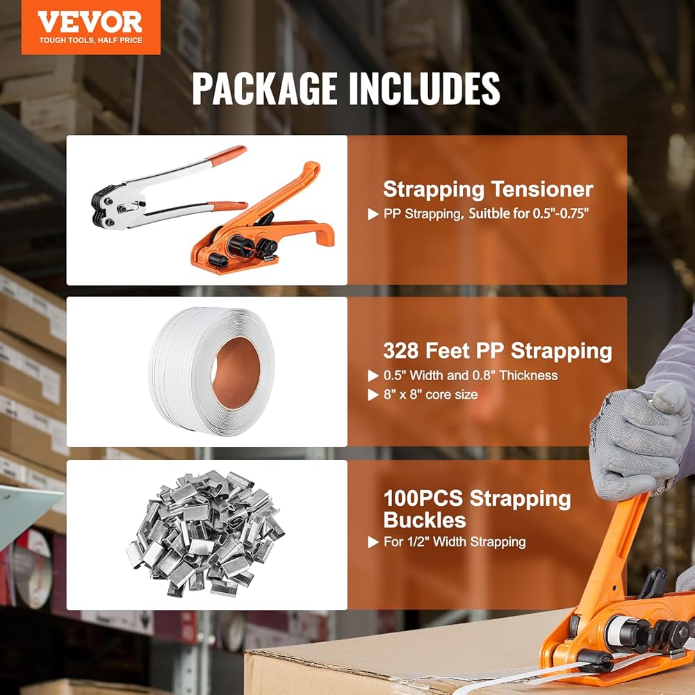 Your All-in-One Solution: If you're moving, you definitely need this. Our strapping kit is perfect for both industrial strapping and home packaging. Think warehouses, garages, pallets, and docks. It ensures your cargo's security on the go and can handle everything from glass to pipes, materials, and even fruits!