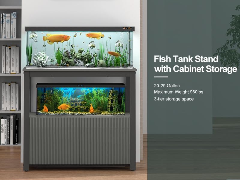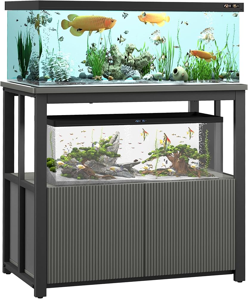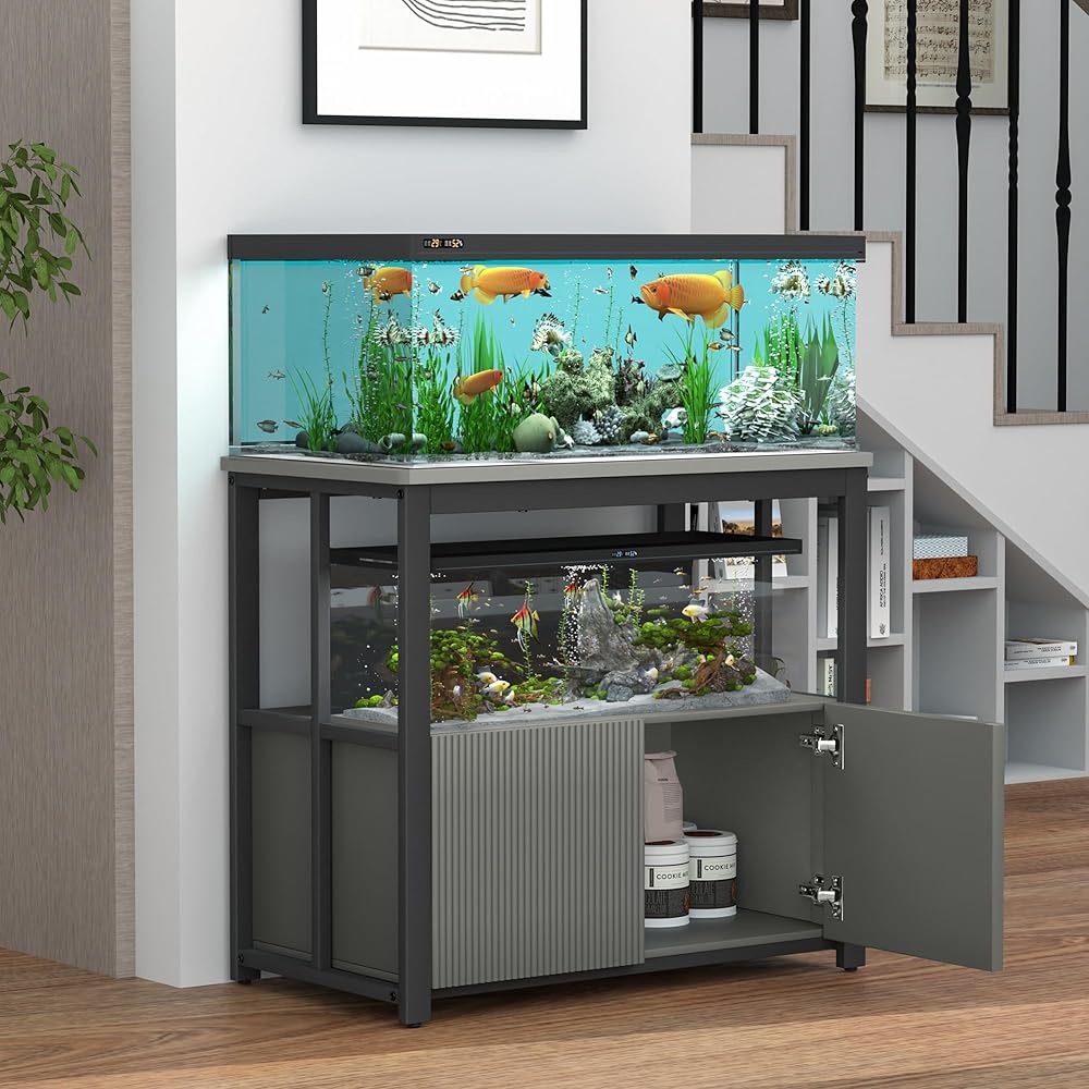 قدرة تحمل رائعة: يتميز حامل حوض السمك الخاص بنا بمواد عالية الجودة من إطار فولاذي مطلي بالمينا السميك وألواح سميكة، وبنية متينة، مما يسمح بأقصى سعة للوزن تصل إلى 960 رطلاً. يضمن الهيكل المعزز والتصميم المستقر عالي التحمل ثبات حامل حوض السمك الخاص بك، مما يزيل مخاوفك بشأن التذبذب أو عدم الأمان