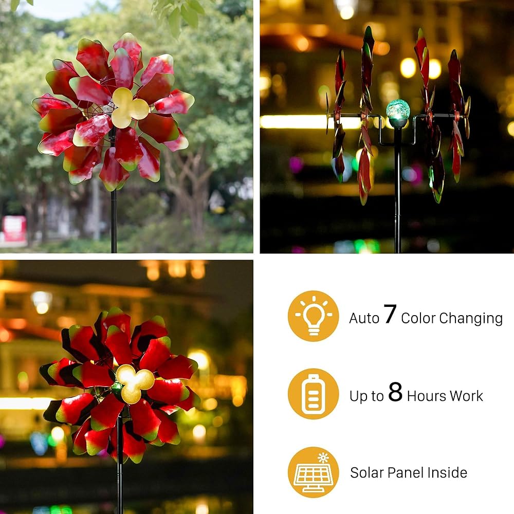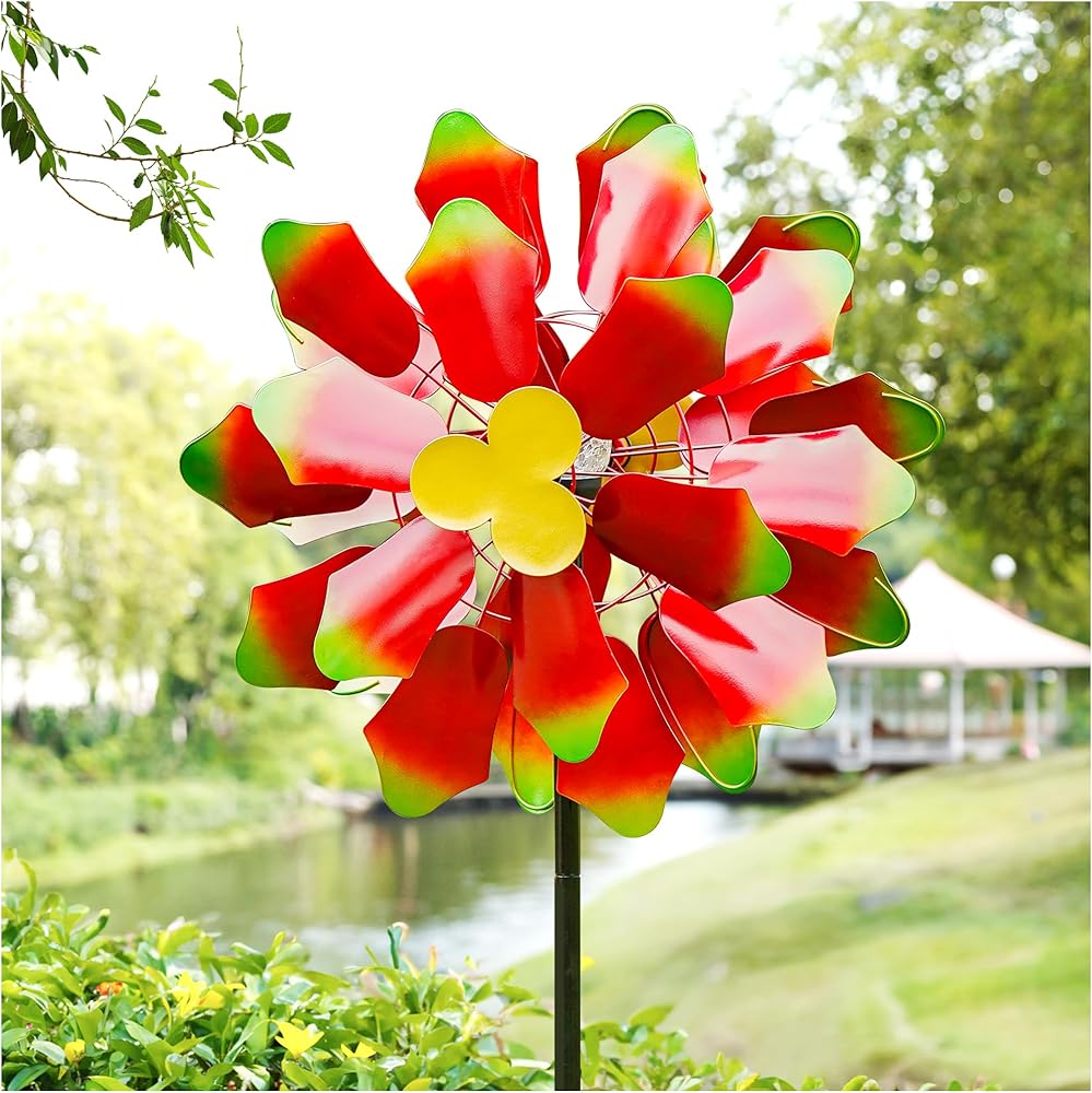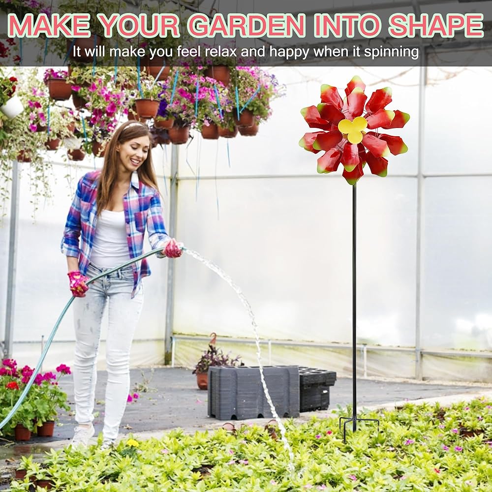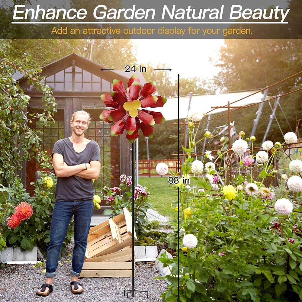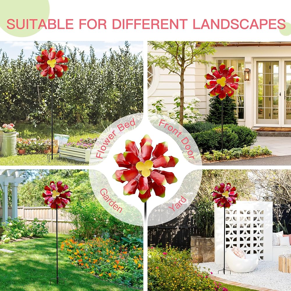 🌺 تعزيز الجمال الطبيعي للحديقة: أضف منظرًا حيويًا جذابًا في حديقتك من خلال منحوتة الرياح المعدنية الحركية والدوارة.