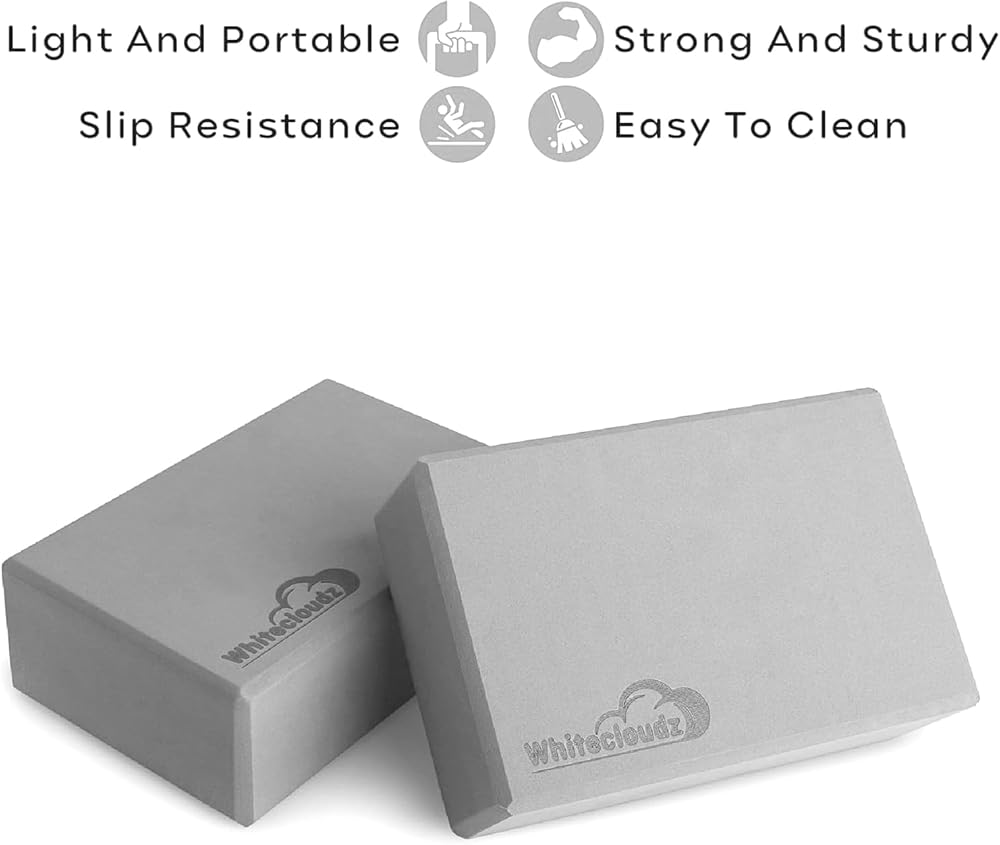 • Premium Design Yoga Blocks: WHITECLOUDZ Yoga Blocks set of 2, non-slip high density yoga bricks (9'' x 6'' x 3'') offer superior traction and improves deeper posses with balance, increase strength & Flexibility, provide stability