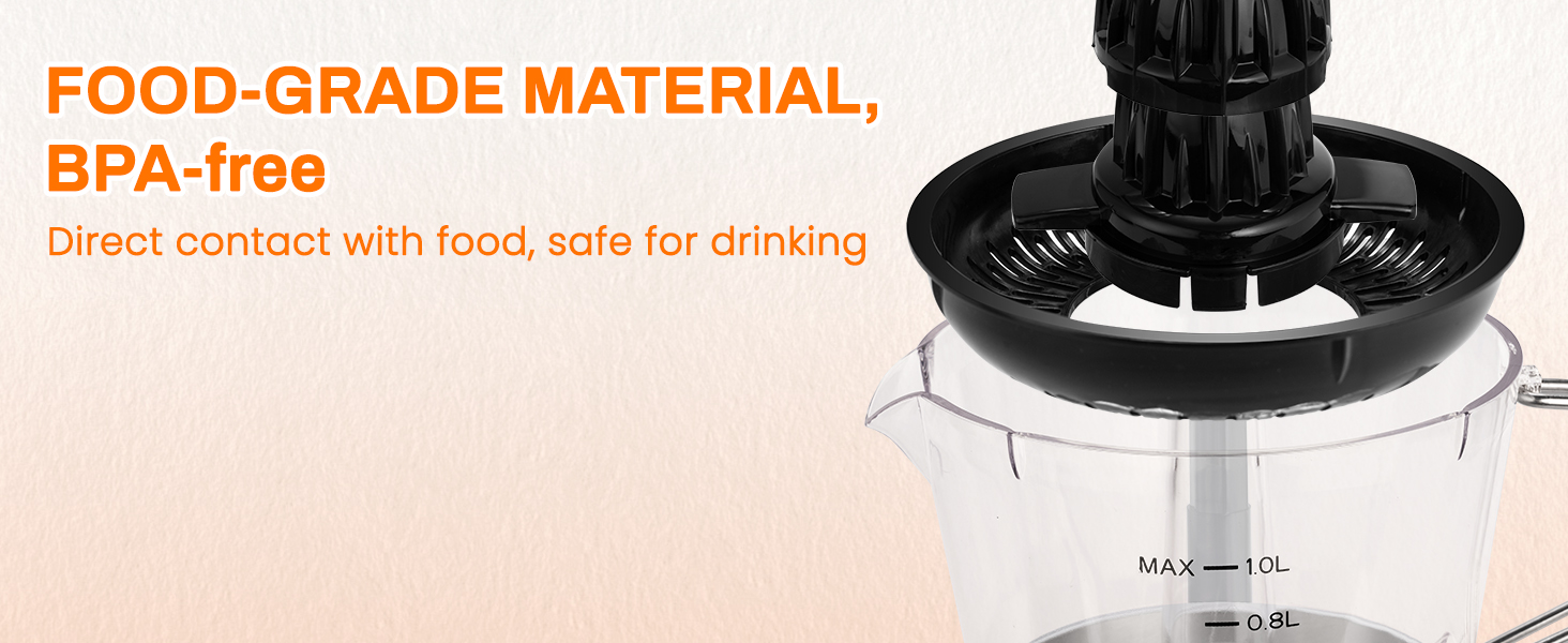 【مادة آمنة】: اعتماد مواد آمنة خالية من البيسفينول أ، مما يضمن استهلاك كل رشفة من العصير براحة البال، والحفاظ على صحتك.