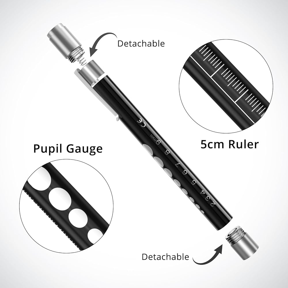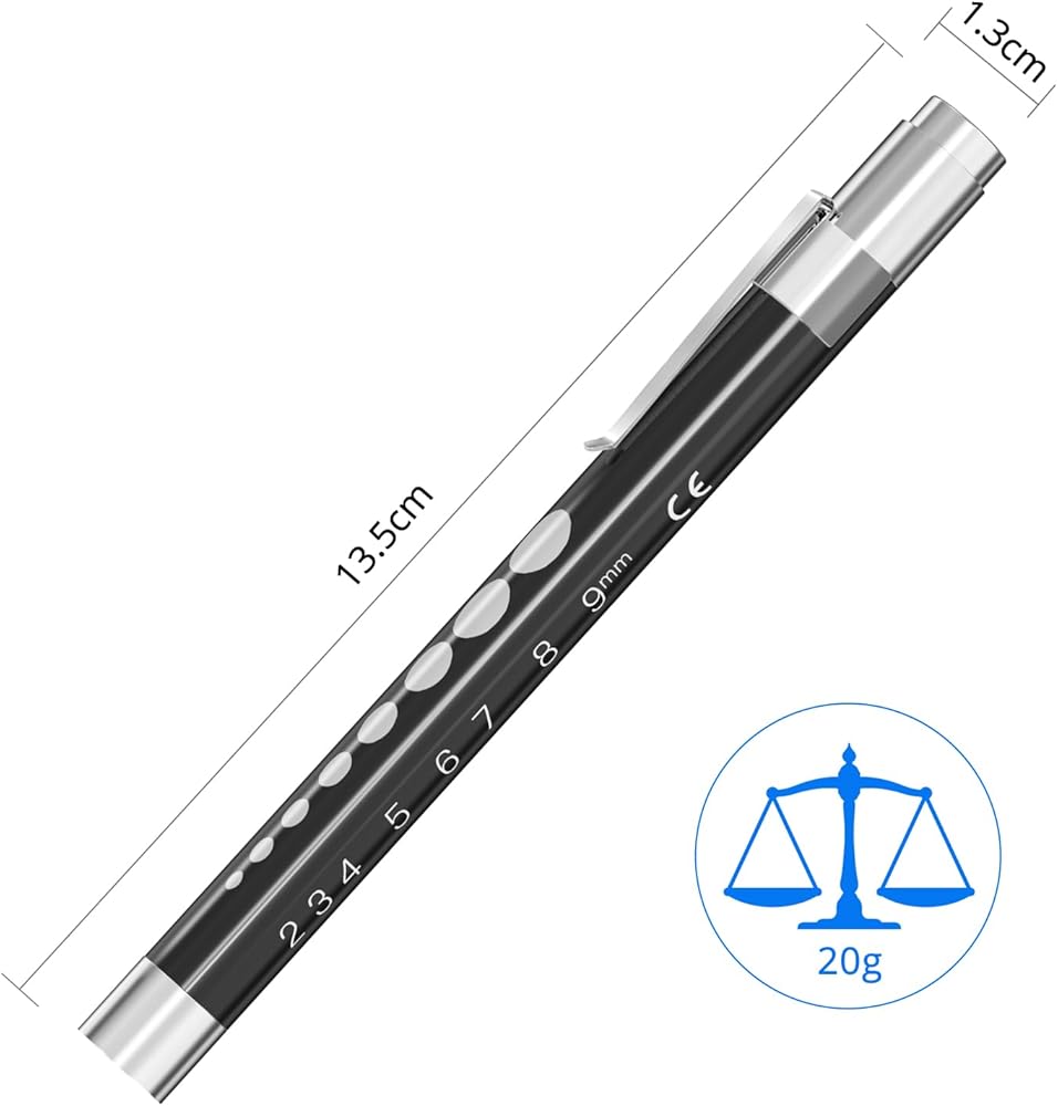 • القياس الدقيق: تم تصميم مصابيح القلم هذه للممرضات للتأكد من الدقة، وتتميز بمقياس حدقة مصمم بدقة وعلامات مسطرة 5 سم. يمكن ربطها بسهولة بالزي الطبي، فهي تعزز كفاءة الأطباء وطلاب الطب أثناء الفحوصات.