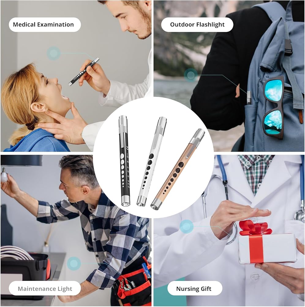 • فائدة متعددة الاستخدامات: هذه الأضواء القلمية الأنيقة والقابلة للتكيف للممرضات تتجاوز مجرد الاستخدام الطبي. إنها مناسبة تمامًا للعناية الشخصية والتخييم والإصلاحات المنزلية، كما أنها هدية رائعة لطلاب الطب والمهنيين على حدٍ سواء.
