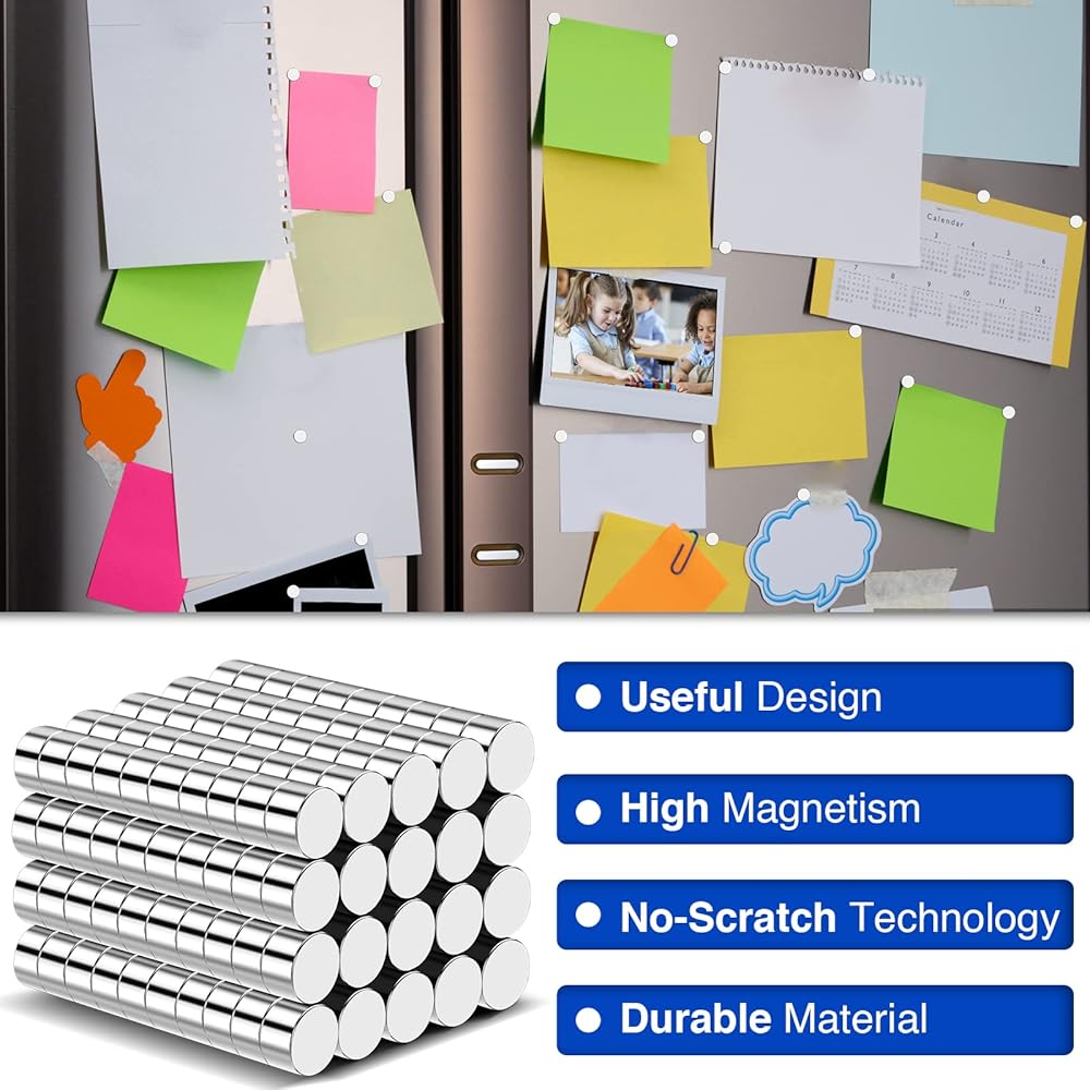【حجم مغناطيس صغير 】: 5 × 1 مم 500 قطعة مغناطيس ثلاجة صغيرة، ومغناطيس النيوديميوم الدائري يمكن أن يلبي احتياجاتك المختلفة. تُستخدم هذه المغناطيسات ذات الدائرة الصغيرة على نطاق واسع في الحياة والعمل. يضمن الحجم الصغير لكل مغناطيس أنه لن يغطي أي عناصر مهمة على ثلاجتك أو السبورة البيضاء.