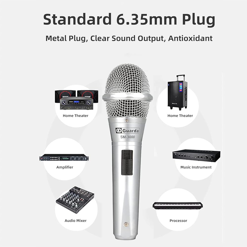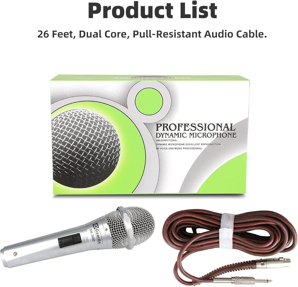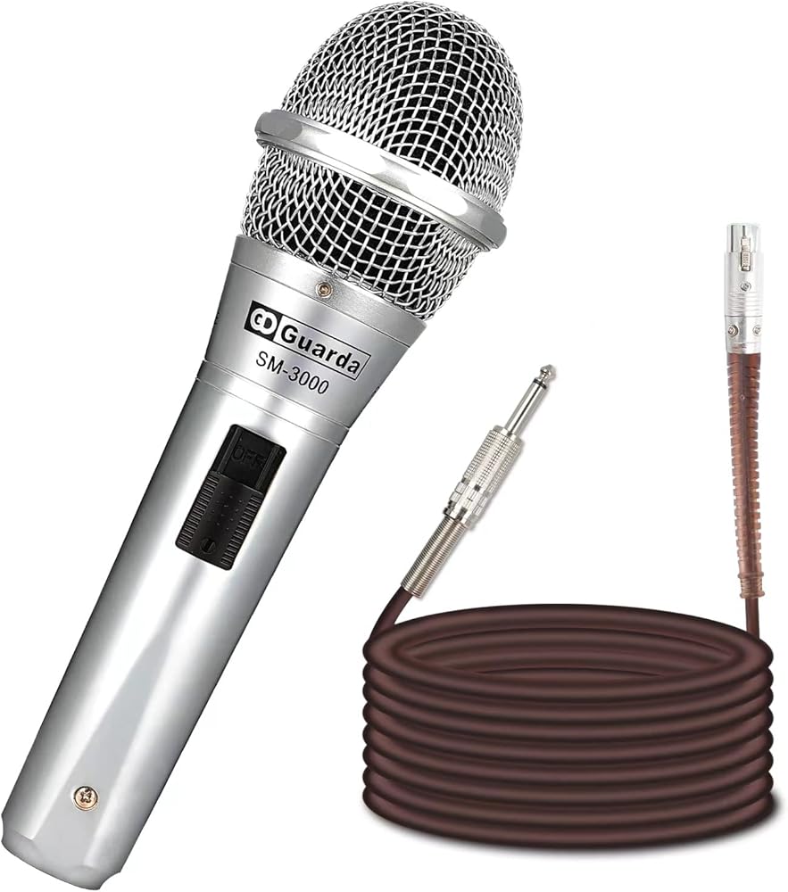 ميكروفون صوتي ديناميكي قلبي من Guarda مع كابل XLR بطول 26.3 قدم، ميكروفون معدني محمول متوافق مع آلة الكاريوكي / مكبر صوت / أمبير / خلاط لغناء الكاريوكي، والكلام، ومفتاح التشغيل/الإيقاف (SM-3000)