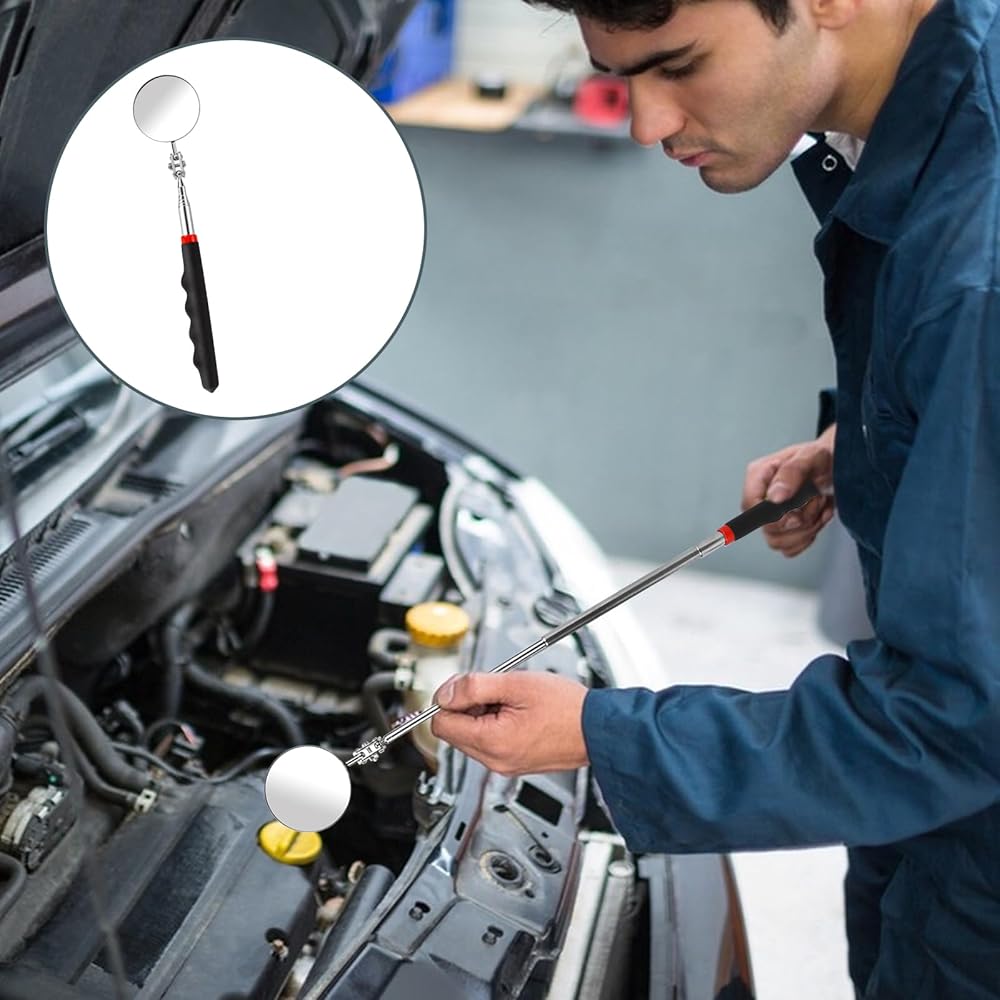 - 【360° Rotation】The round inspection mirror not only telescopes but also has 360-degree rotation, providing you with all-round observation