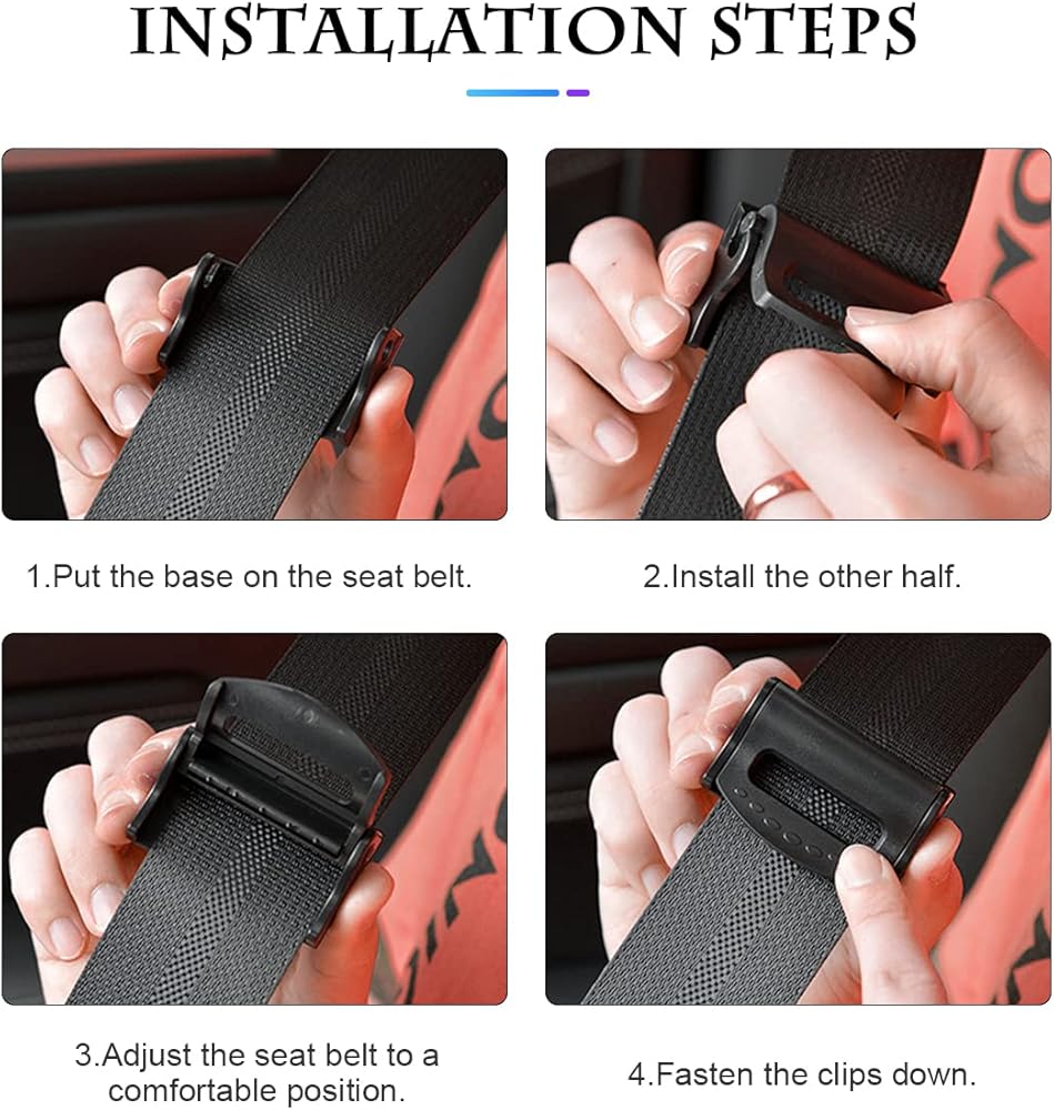 【Comfortable & Safety】: This seat belt adjusters can help you keep the seat belt at a safe and comfortable distance with our shoulders, neck, chest and abdomen, reduce friction between the seat belt and your body. This is perfect for people of all body types.