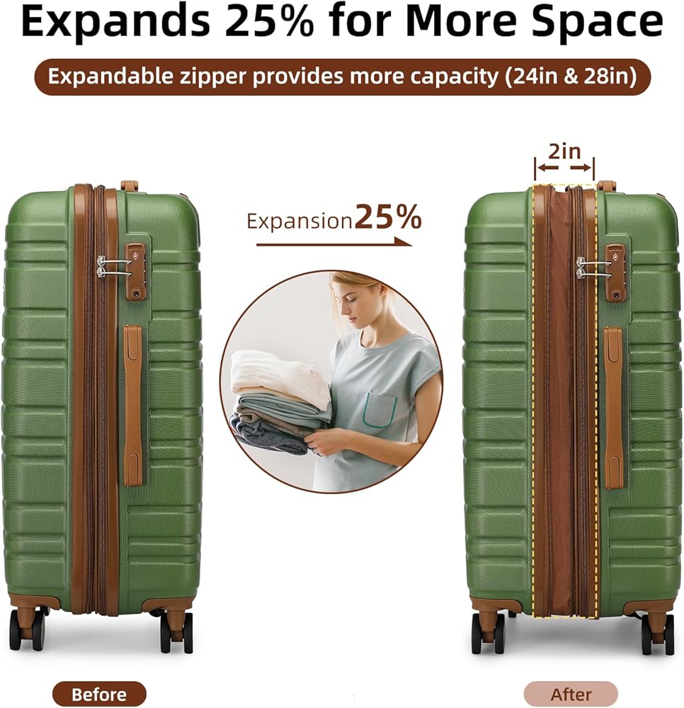 - مجموعة الأمتعة المكونة من 6 قطع تتضمن 18 بوصة، 20 بوصة، 24 بوصة، 28 بوصة، حقيبة سفر وحقيبة أدوات الزينة، يمكن تخزينها بشكل مريح واحدة في أخرى.