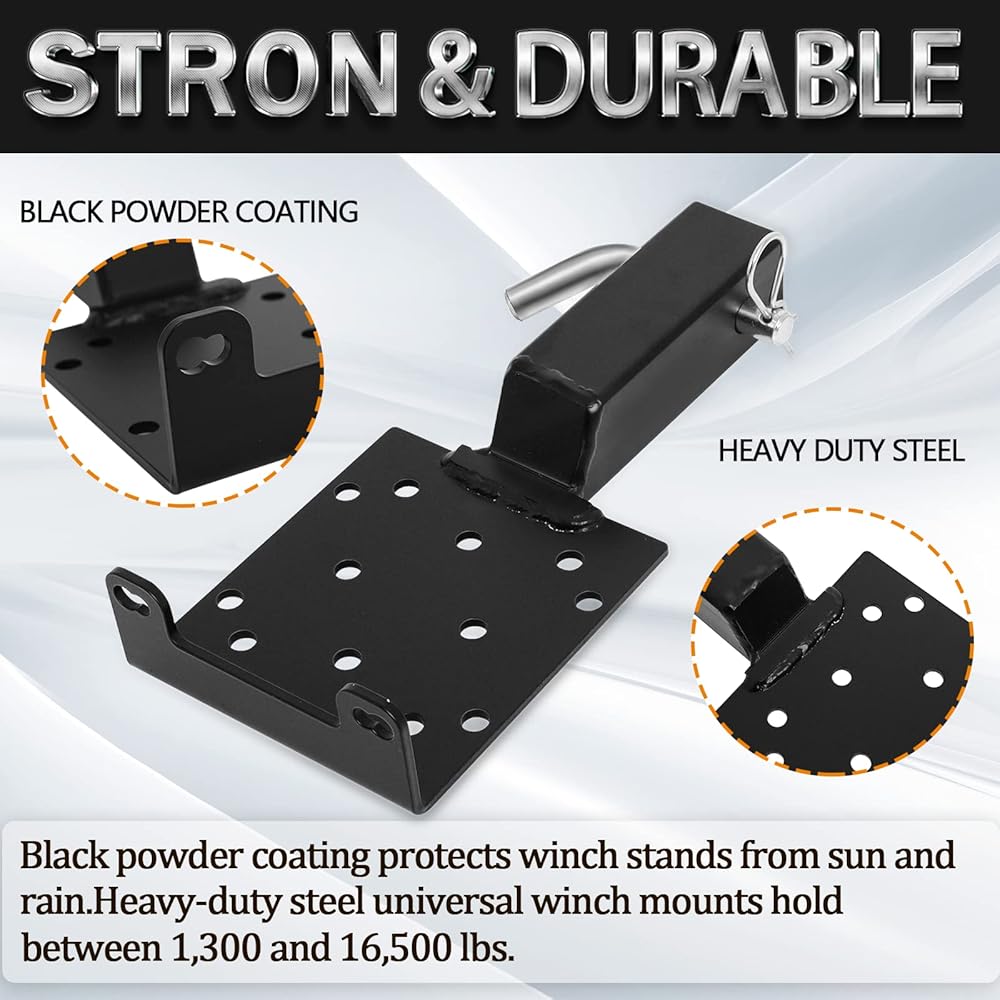 • 【Strong and Durable】Durable construction and heavy-duty steel materials make it strong and durable for long periods of load-bearing.The hitch mount has a tensile strength of 3,600-lbs.The black coating on the surface protects the winch stand from sun and rain