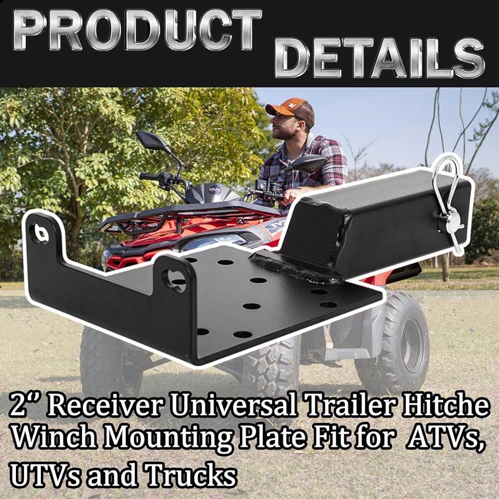 Universal Trailer Hitch Winch Mount Plate with 2-inch Receiver Fit for ATVs, UTVs, Truck, Lawn and Garden Equipment