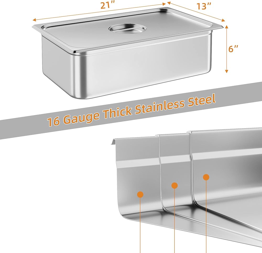• 【Dimension & Capacity】Size: 21"x13"x6", Capacity: 21 QT.Made of heat-resistant and high-grade stainless steel.