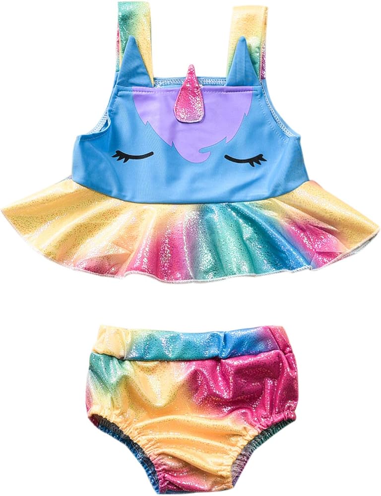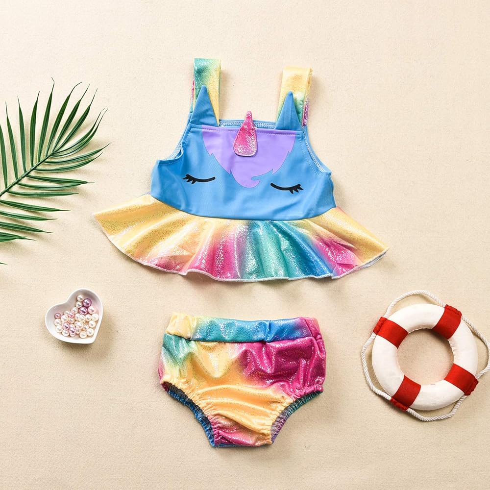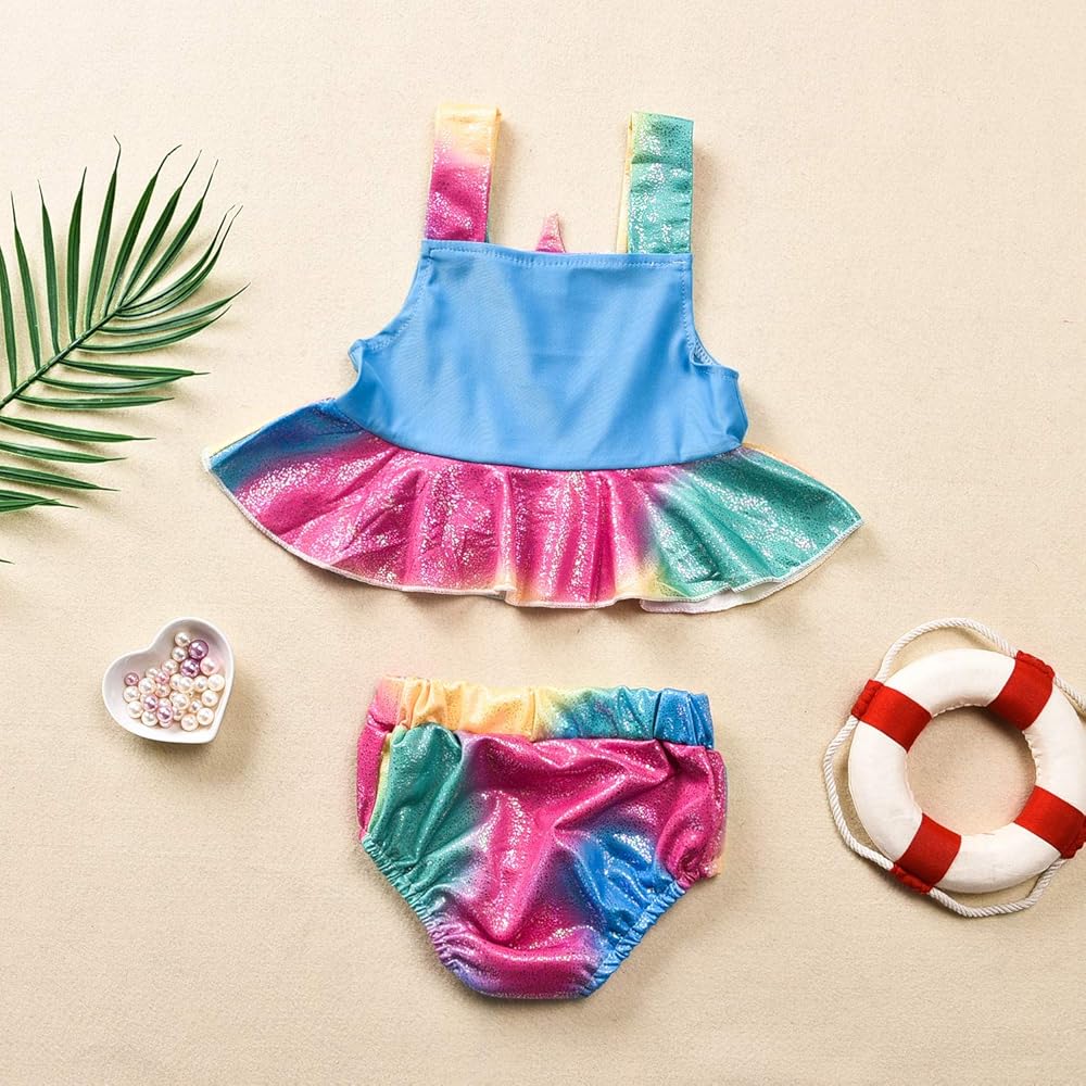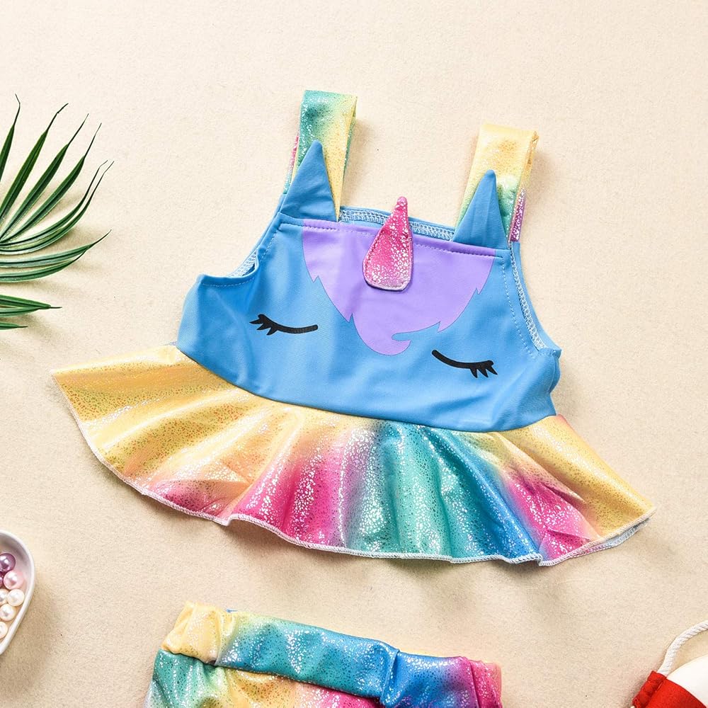 بدلة استحمام للأطفال الصغار بتصميم يونيكورن ملابس سباحة للفتيات من قطعتين ملابس سباحة صيفية للشاطئ تانكيني