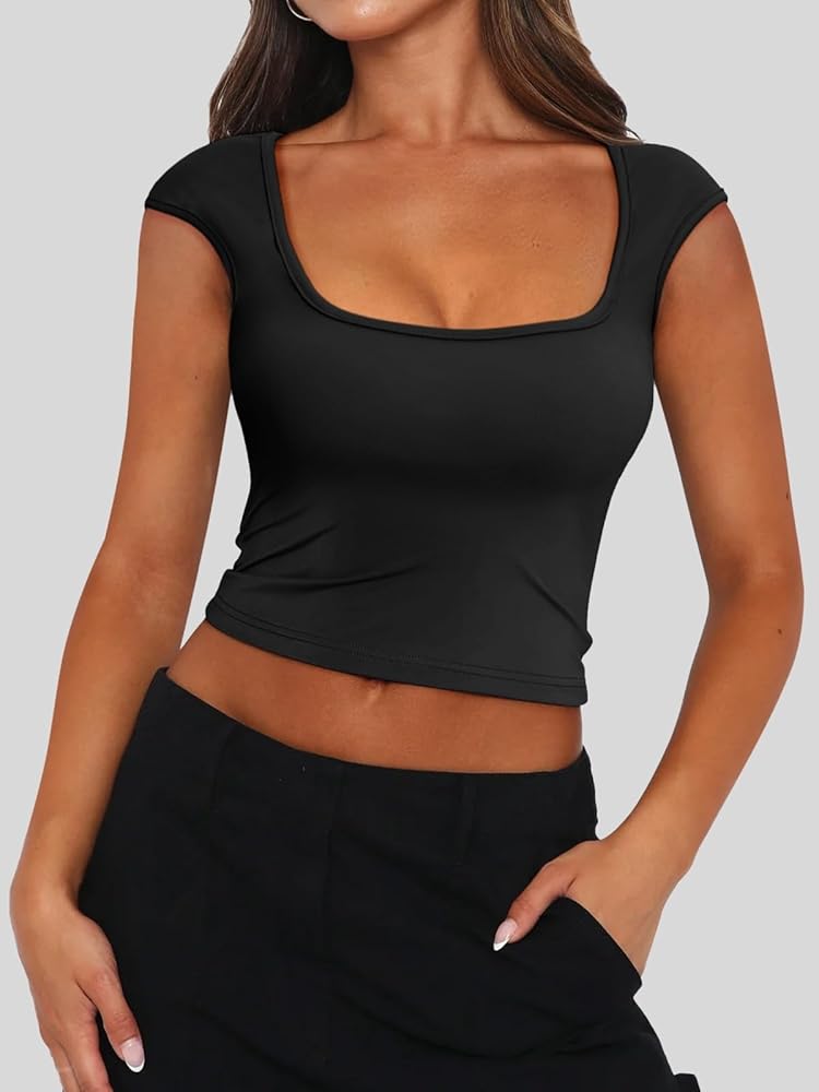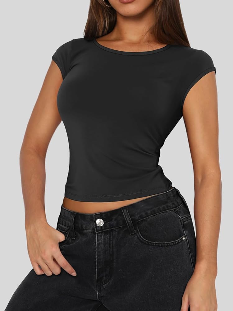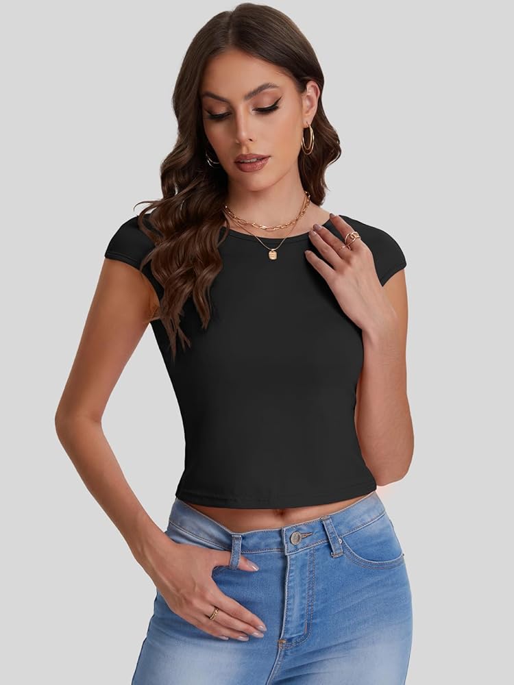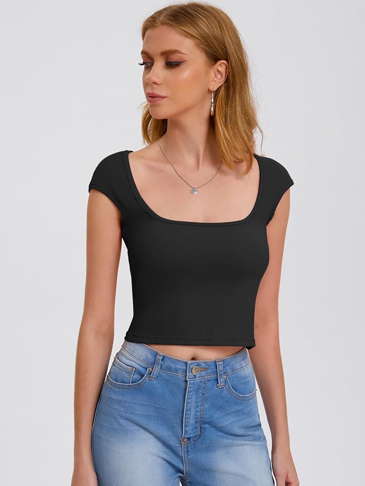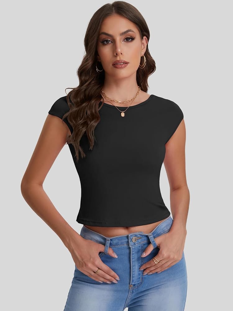 الخامة - القمصان النسائية القصيرة مصنوعة من مادة خفيفة الوزن للغاية وعالية التمدد، يوفر النسيج المطاطي تصميمًا مخصصًا يحافظ على كل شيء في الأماكن الصحيحة، ومناسب لتجربة راحة شخصية ومظهر أنيق وجذاب لصيف 2024