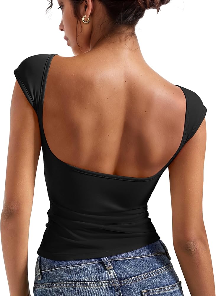الميزة - تصميم القمصان النسائية بدون ظهر، خط عنق دائري، مقاس نحيف، بدون أكمام وله طرق متعددة للارتداء، الملابس الخاصة التي ترتديها للأمام والخلف، ويمكن مطابقة الأمام والخلف مع عناصر مختلفة لإظهار نمط مختلف