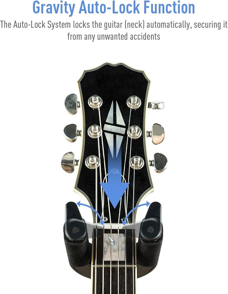 Auto Gravity Lock Function:Lock your guitar automatically when putting guitar neck on the arm and released when lifting your guitar