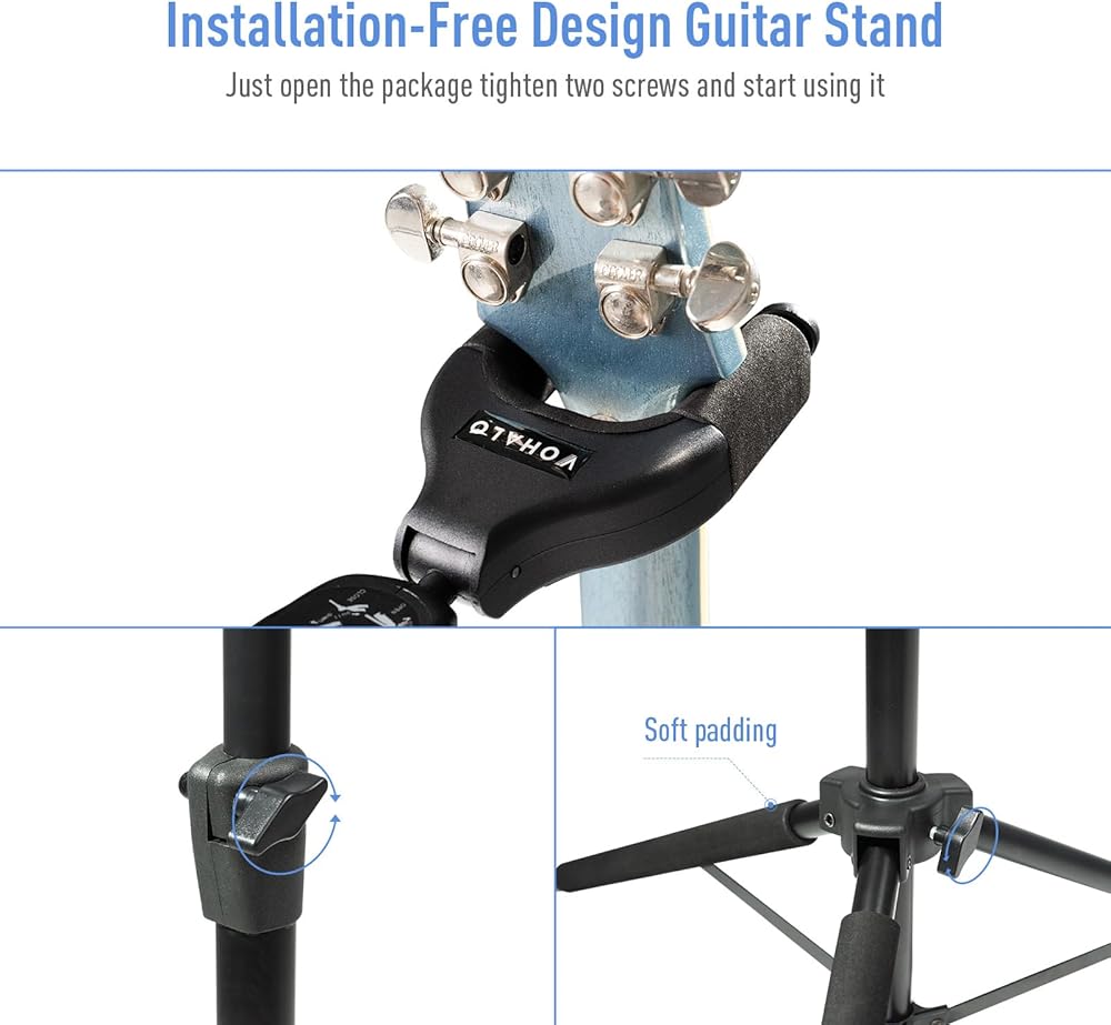 VOHALO Guitar Stand Adjustable for Acoustic, Electric, Bass Guitars and Banjos, Black