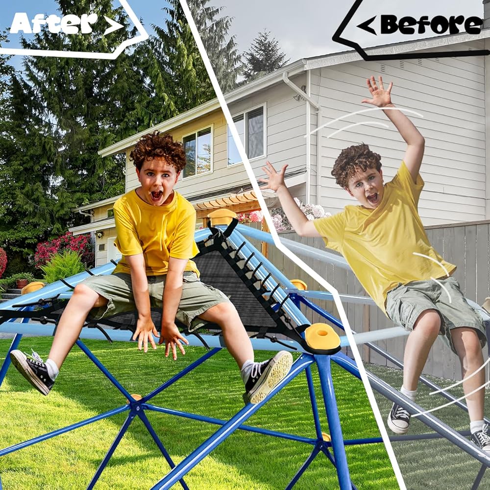 🔨سهل التركيب: مع خطوات التثبيت التفصيلية، يكون التشغيل بسيطًا وسهل الفهم، ويمكن تركيبه بسهولة مع شخصين بالغين فقط في ساعة واحدة. قم على الفور بإعداد متسلق قبة للأطفال لطفلك في الفناء الخلفي.