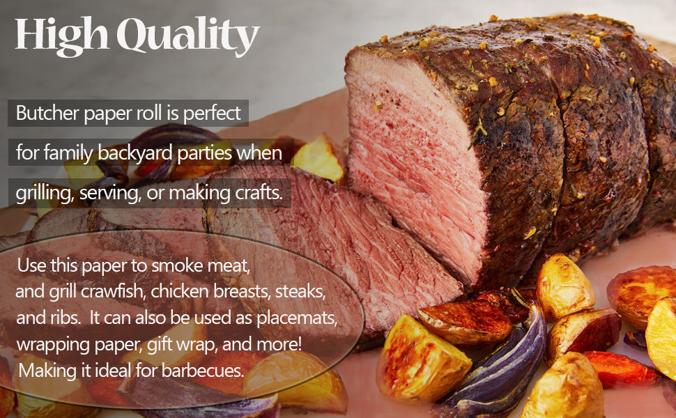 متعددة الأغراض: لفافة ورق الجزار مثالية لحفلات الفناء الخلفي للعائلة عند الشواء أو التقديم أو صنع الحرف اليدوية. استخدم هذا الورق لتدخين اللحوم وشوي الجراد وصدور الدجاج وشرائح اللحم والأضلاع. يمكن استخدامها أيضًا كمفارش أطباق، وورق تغليف، وتغليف هدايا، والمزيد! مما يجعلها مثالية لحفلات الشواء.