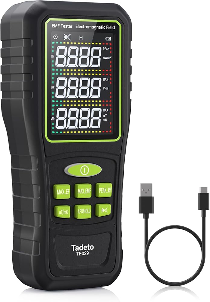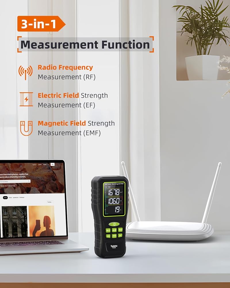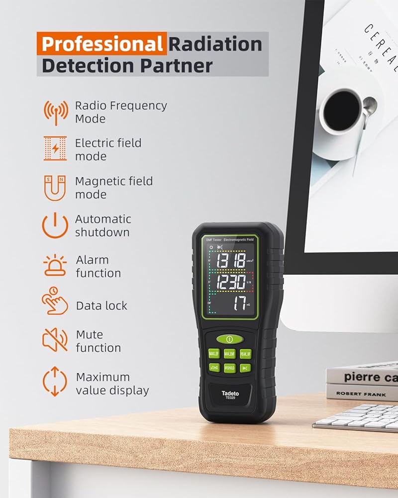 【مقياس ترددات الراديو EMF المستخدم على نطاق واسع】 يكتشف EMF إشارات WiFi وإشارات 5G وإشعاع الميكروويف من أفران الميكروويف والأجهزة المنزلية. قم بقياس المجالات الكهرومغناطيسية من أجهزة التلفاز، وأجهزة طهي الحث، وأجهزة طبخ الأرز، والثلاجات، وأجهزة الكمبيوتر، وأسلاك الطاقة. يساعد في تخطيط الغرفة ويتجنب البيئات عالية الإشعاع. أداة موثوقة للكشف عن المجال.