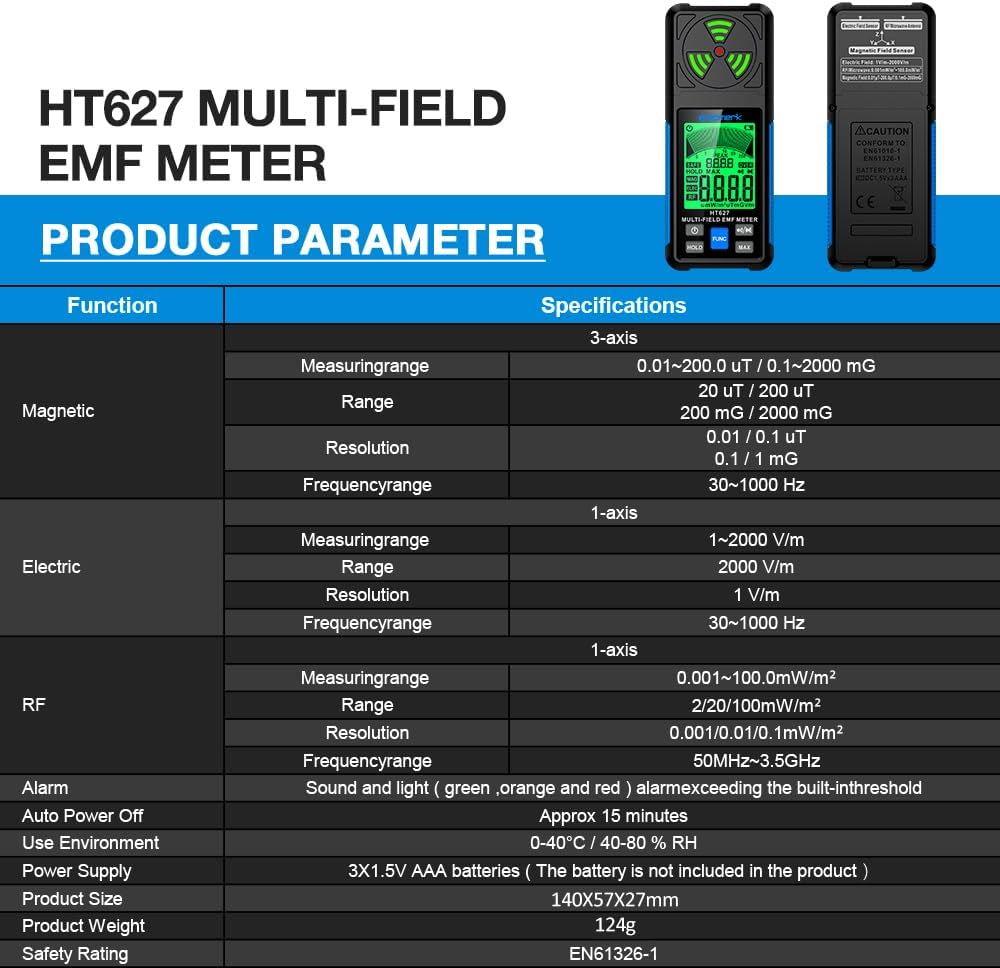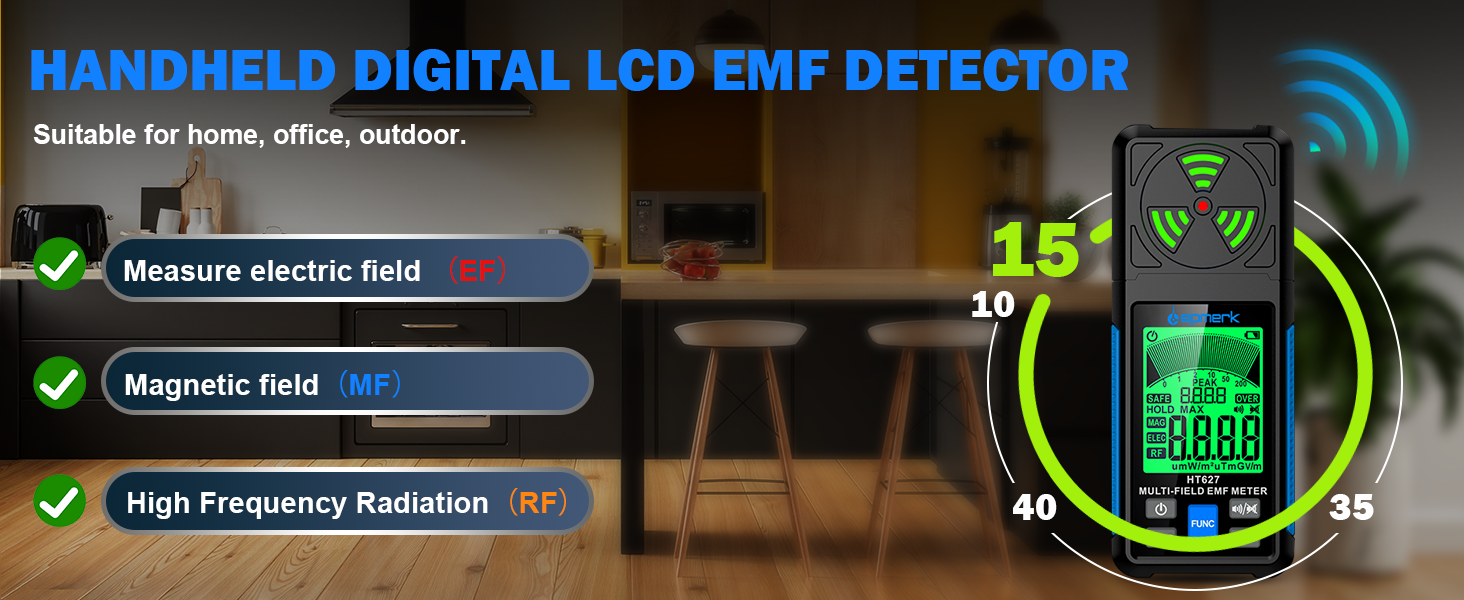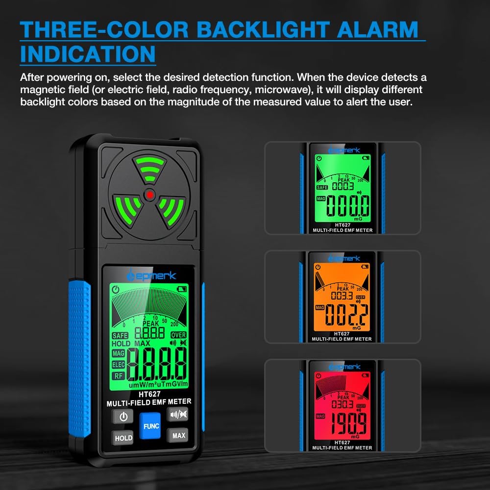 ✅تصميم 3 في 1: يكتشف كاشف EMF متعدد الوظائف المجال المغناطيسي للتيار المتردد (MF)، والمجال الكهربائي (EF) والإشعاع عالي التردد (RF). مفتاح واحد بثلاث وظائف للكشف عن جميع أنواع تلوث EMF الثلاثة في منزلك ومكتبك: مغناطيسي تيار متردد، كهربائي تيار متردد وRF/ميكروويف.