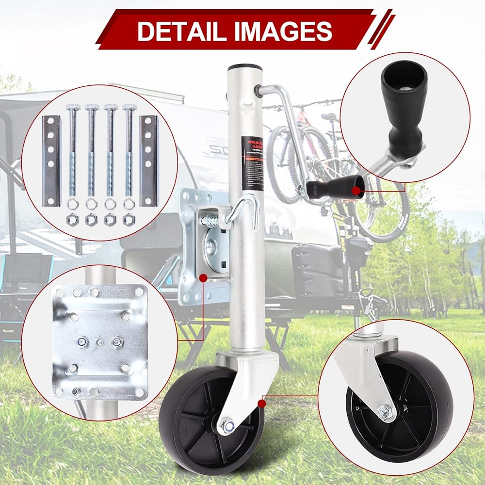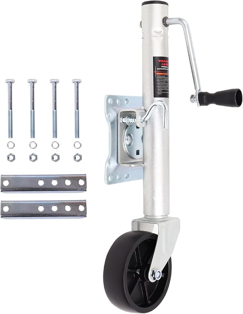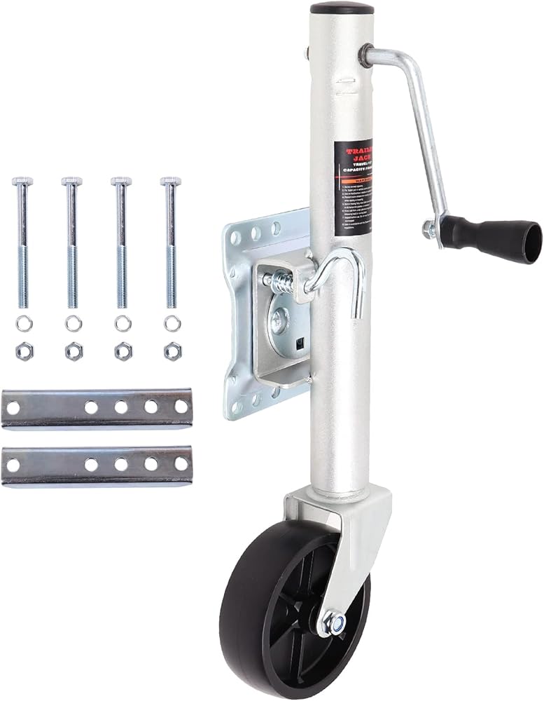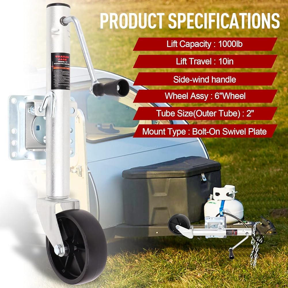 رافعة مقطورة قارب دوارة 1000 رطل مع عجلات 6 بوصة، سفر عمودي 10 بوصة مع أدوات تثبيت مثبتة بمسامير (10 بوصة 1000 رطل)