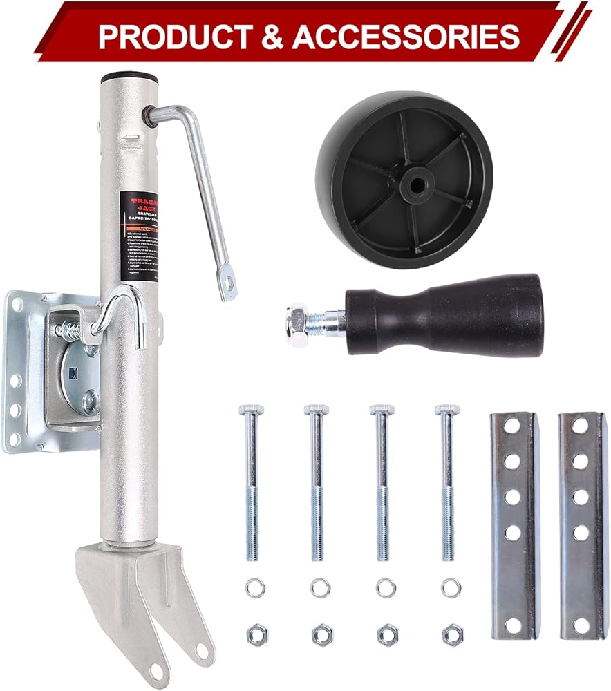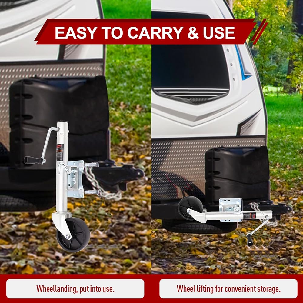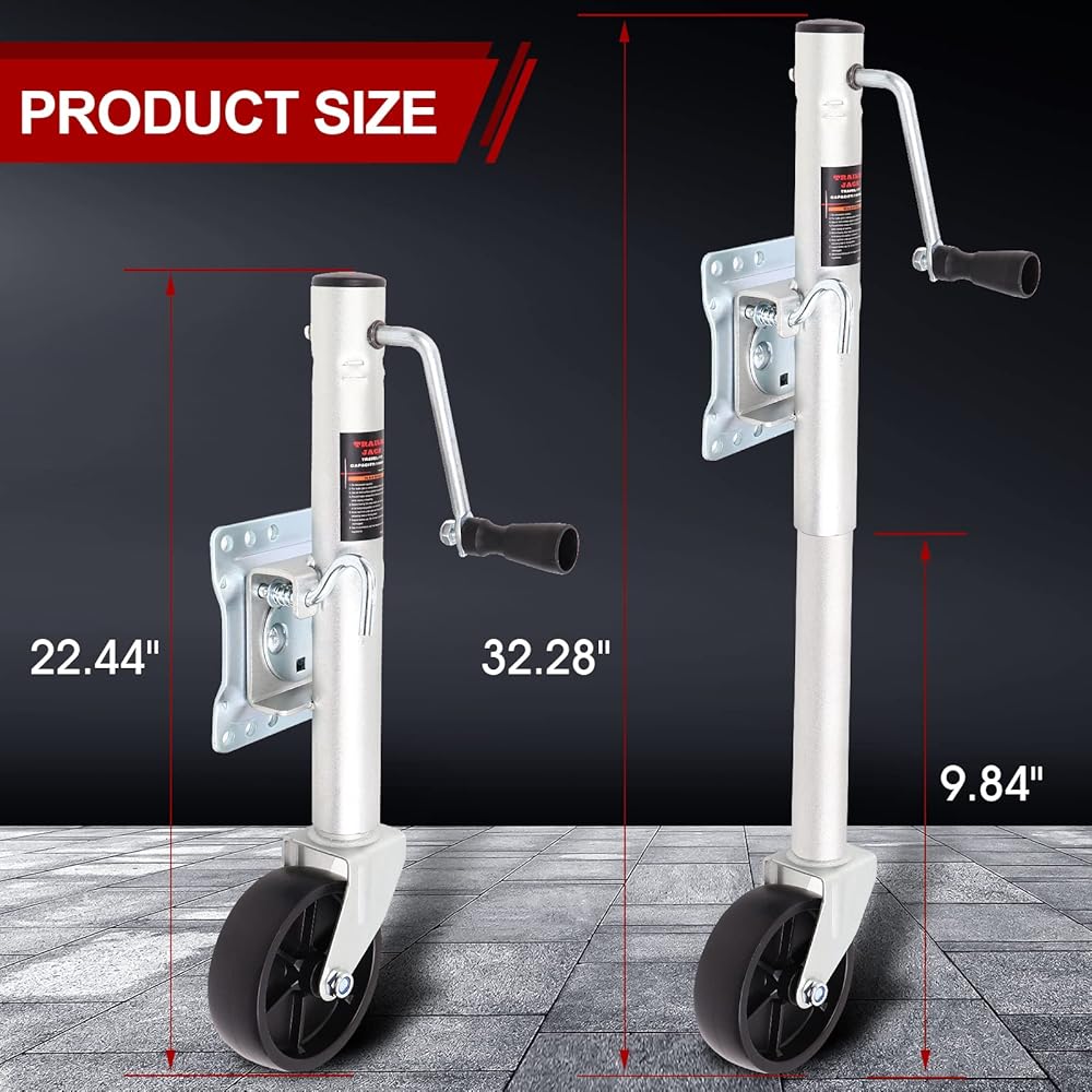 رافعة مقطورة قارب دوارة 1000 رطل مع عجلات 6 بوصة، سفر عمودي 10 بوصة مع أدوات تثبيت مثبتة بمسامير (10 بوصة 1000 رطل)
