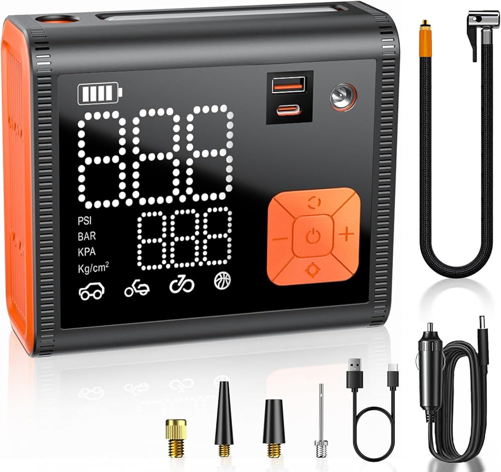 • [توافق ذكي وواسع] مثالية كمضخة هواء محمولة موثوقة لإطارات السيارة. مع خمسة أوضاع تلبي الاحتياجات المتنوعة، من السيارات إلى الدراجات، ومجموعة واسعة من 4 إلى 150 رطل لكل بوصة مربعة، فهي مثالية لسيارات الدفع الرباعي الكبيرة والشاحنات الصغيرة.