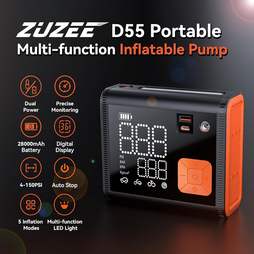 • [طاقة متعددة الاستخدامات، مراقبة دقيقة] قم بالتبديل بين أوضاع البطارية ولاعة السجائر. يحافظ ضاغط الهواء للإطارات ZUZEE على ضغط دقيق للإطارات بهامش نحيف ±1.5 رطل لكل بوصة مربعة. تعمل ميزة النفخ التلقائي على تبسيط عملية العناية بالإطارات أثناء التنقل. خيار مثالي لأولئك الذين يبحثون عن حل منفاخ الإطارات اللاسلكي.