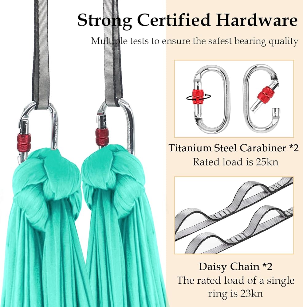 سهلة الإعداد: إذا اتبعت الدليل أو الفيديو الخاص بنا، يمكنك تثبيت أرجوحة اليوجا بسهولة حتى لو كنت قادمًا جديدًا إلى اليوجا الجوية. يعد ارتفاع السقف الذي يبلغ 8 أقدام وما فوق مثاليًا لمسافة 5.5 ياردة من الحرير الجوي.