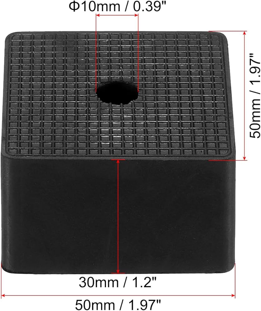 • Specification: Color: Black Material: Rubber Hole Diameter: 10 mm/ 0.39 inch Size: 50 x 50 x 30 mm/ 1.97 x 1.97 x 1.2 (L*W*H) Packing List: 8 x Rubber Anti-Vibration Pads