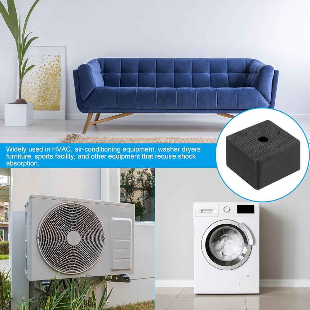 • The rubber anti-vibration pads can effectively reduce vibration and noise for your equipment, widely used in HVAC, air-conditioning equipment, washing machines, dryers, furniture, sports facility, and other equipment that require shock absorption.