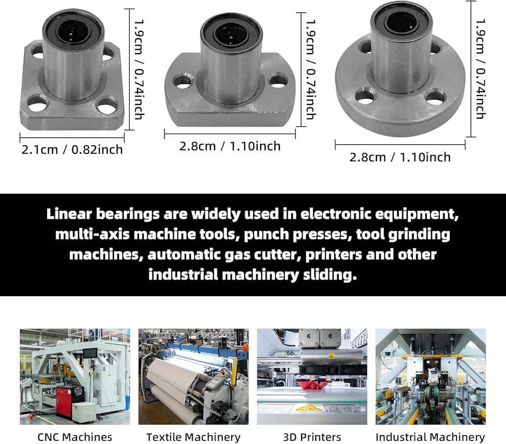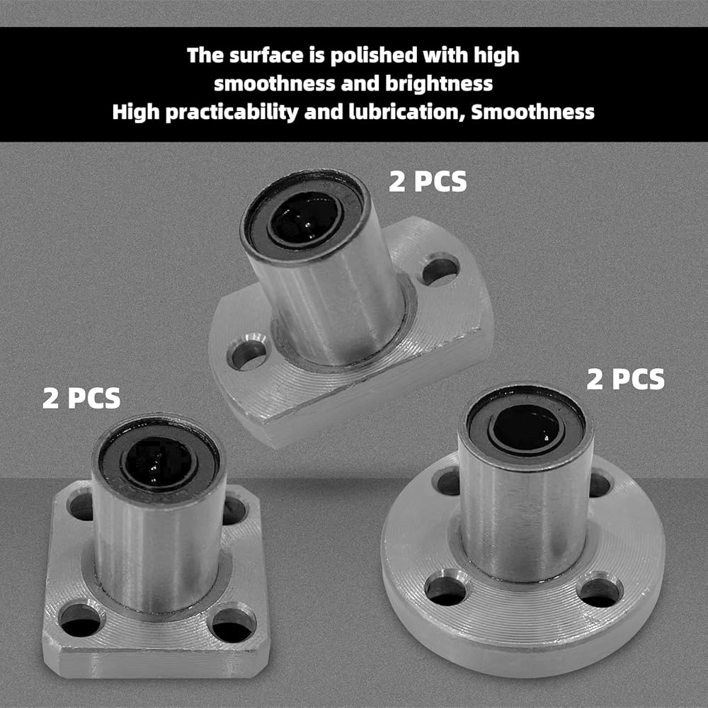 6 قطع محامل كروية خطية 6 مم، LM6UU دائرية/مربعة/بيضاوية شفة كروية الحركة الخطية لطابعة ثلاثية الأبعاد بعمود خطي 6 مم