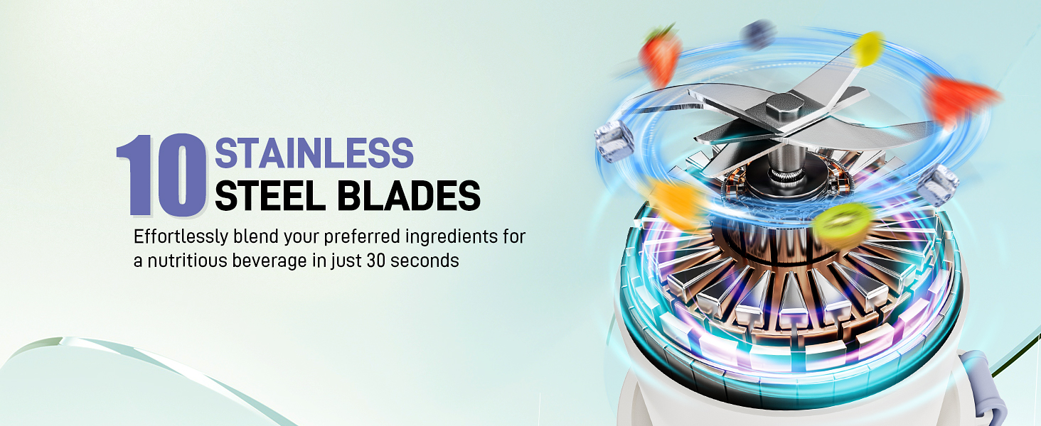 نتائج سريعة مع الدب: استغل قدرات المزج القوية لخلاط الدب المحمول. تتميز بـ 10 شفرات قوية من الفولاذ المقاوم للصدأ 304، يمكنها التغلب على المكونات المجمدة في 30 ثانية فقط - لتصنيع عصائر خالية من العيوب، ومخفوقات البروتين، والعصائر، والأقنعة، وأغذية الأطفال بسرعة! للحصول على أفضل النتائج، قم بتقطيع الفواكه/الخضروات إلى شرائح. استمتع بقوة المحرك القوي في تصميم أنيق - سواء كان طازجًا أو مجمدًا، سيتم إعداد مخفوقاتك في لحظة!